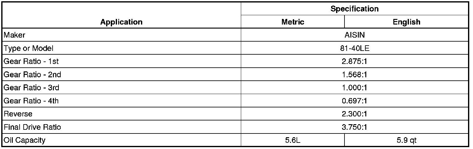 Transmission General Specifications