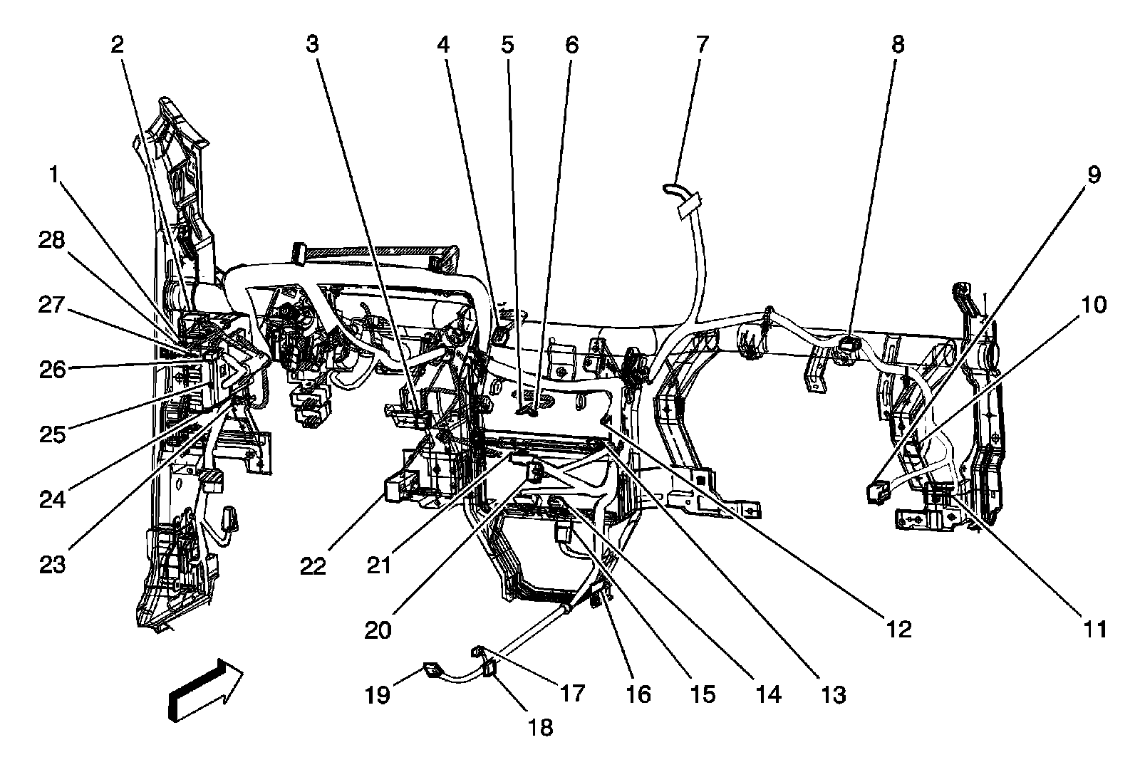 Instrument Panel Harness Routing (LHD Shown, RHD Similar)