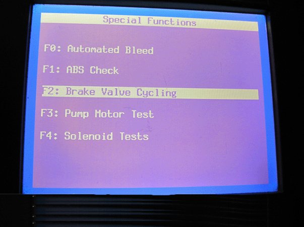 7. Select "F2.Special Functions" and then Select "F2.Brake Valve Cycling".