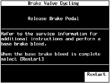 13. The "Release Brake Pedal" message will appear from the Brake Valve Cycling screen.