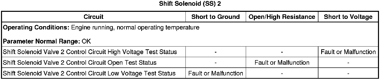 * Shift Solenoid Valve 2 Control Circuit High Voltage Test Status