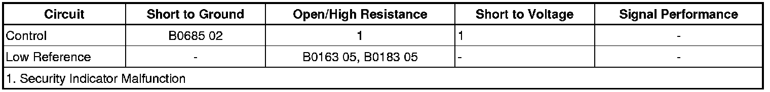 4. Command the security LED ON. Test for B+ between the control circuit terminal 1 and ground.