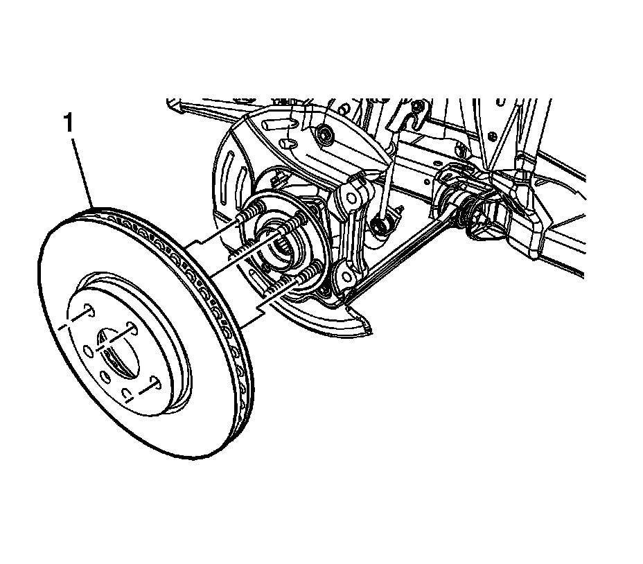 3. Install the front disc brake rotor (1). Refer to Front Brake Rotor Replacement (Front Brake Rotor Replacement).