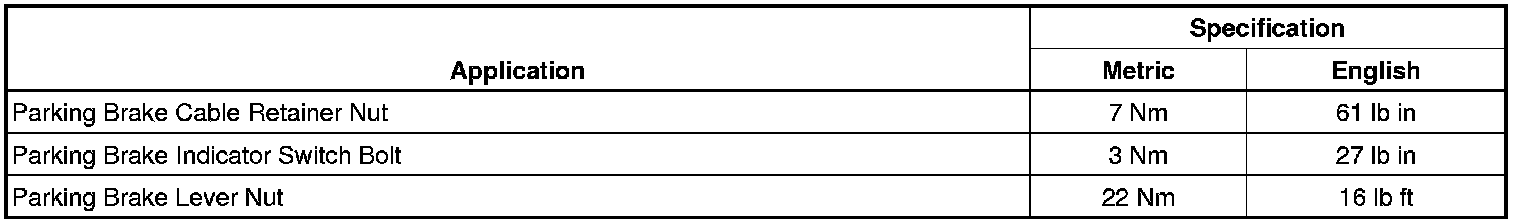 Parking Brake System: Specifications