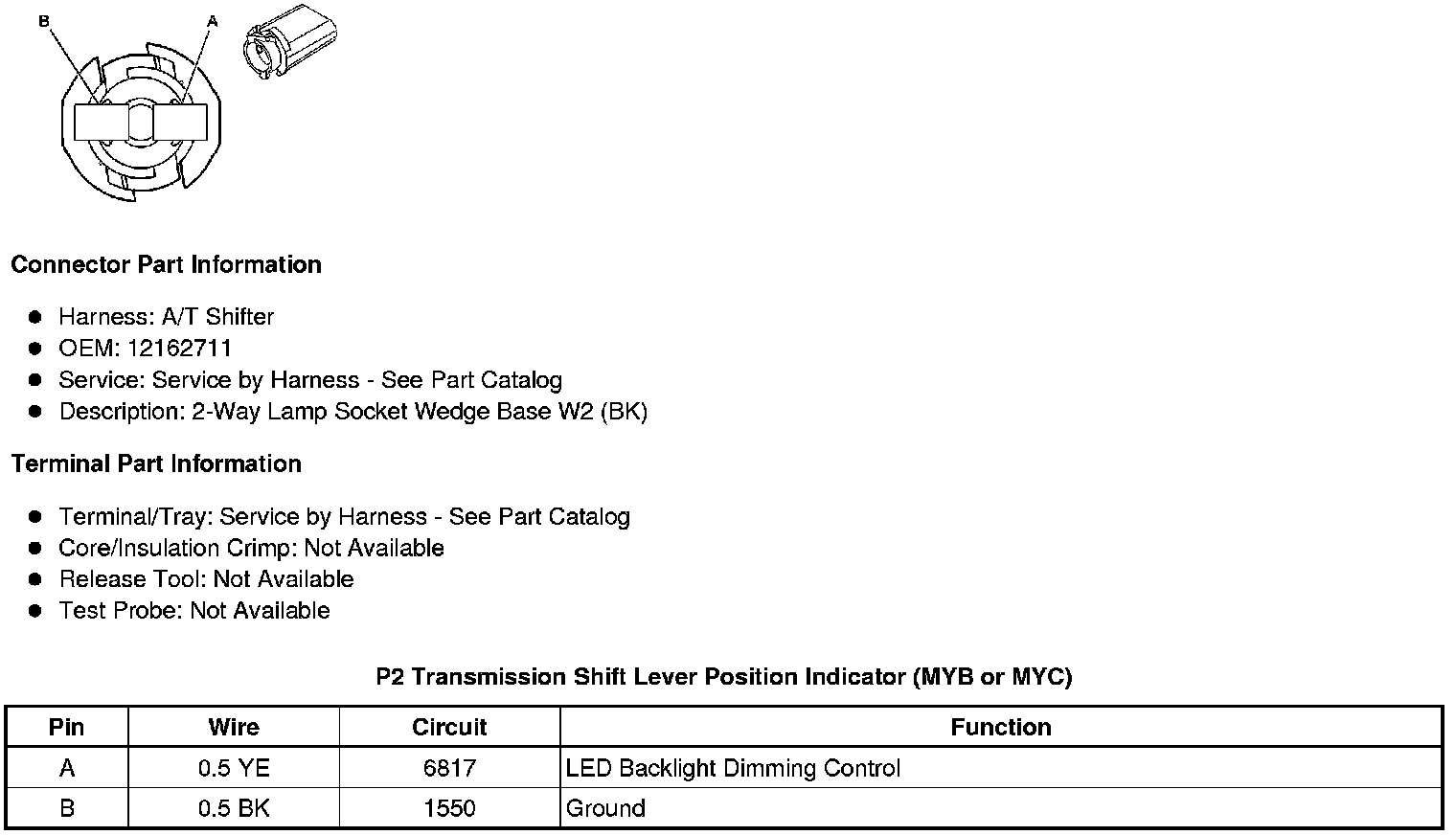 P2 Transmission Shift Lever Position Indicator (MYB or MYC)