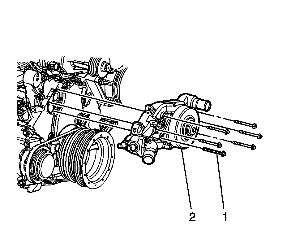 9. Remove the water pump (2).