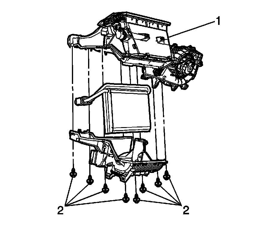 1. Remove the HVAC module assembly. Refer to Air Conditioning and Heater Module Assembly Removal and Installation (Air Conditioning and Heater Module Assembly).