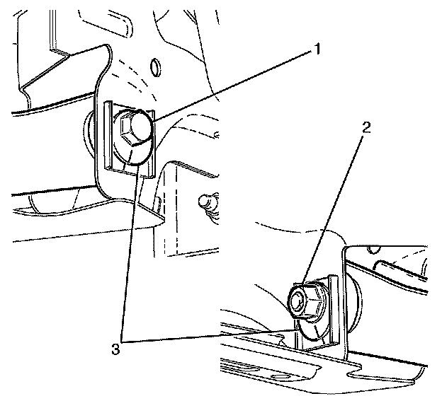 * The lower control arm to the subframe retaining bolt (1) and nut (2) eccentric washers (3) are used to adjust rear suspension camber.