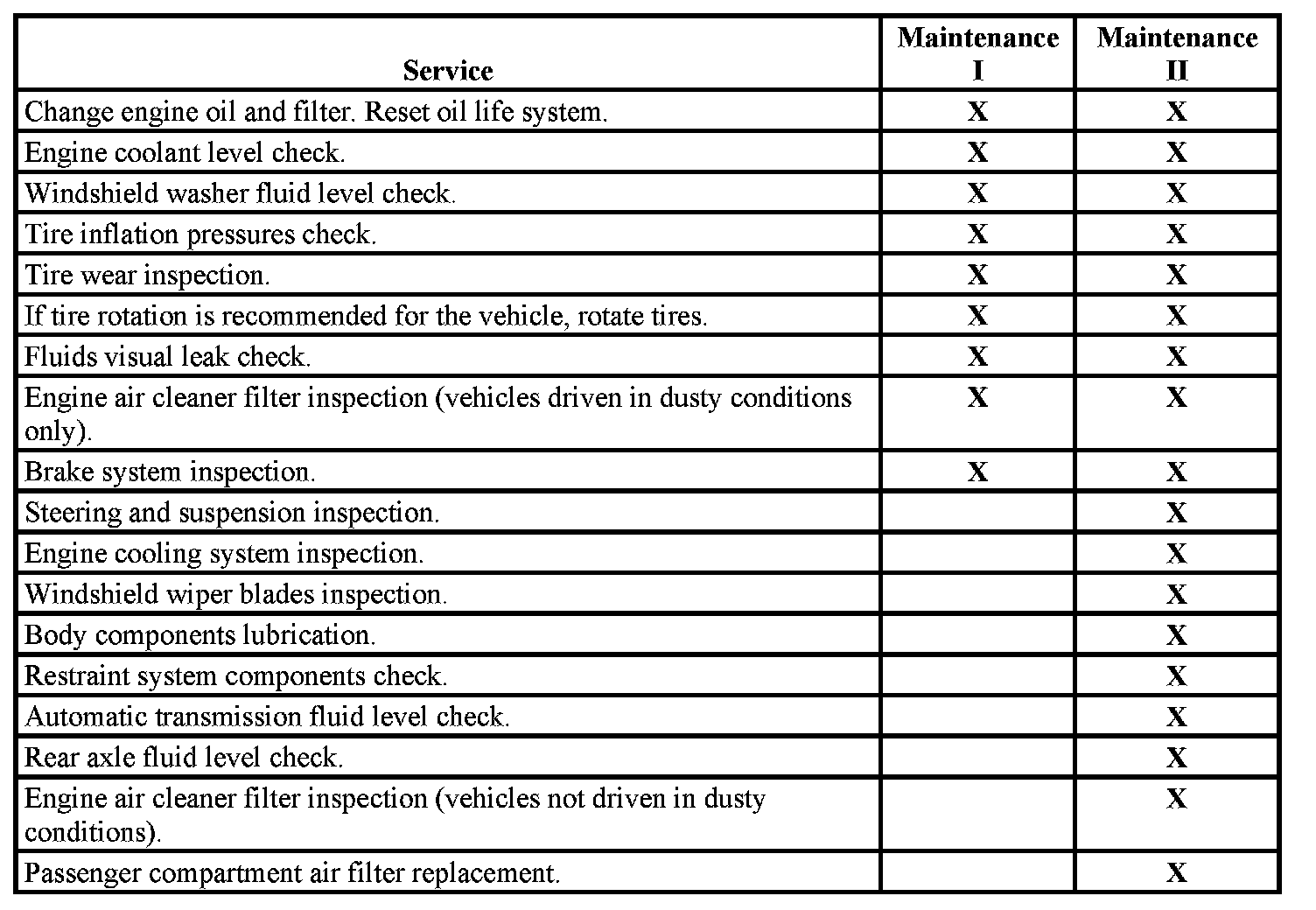 When the "Change Engine Oil Soon" message displays, certain services, checks, and inspections are required. The services described for Maintenance I should be performed at every engine oil change. The services described for Maintenance II should be performed when: