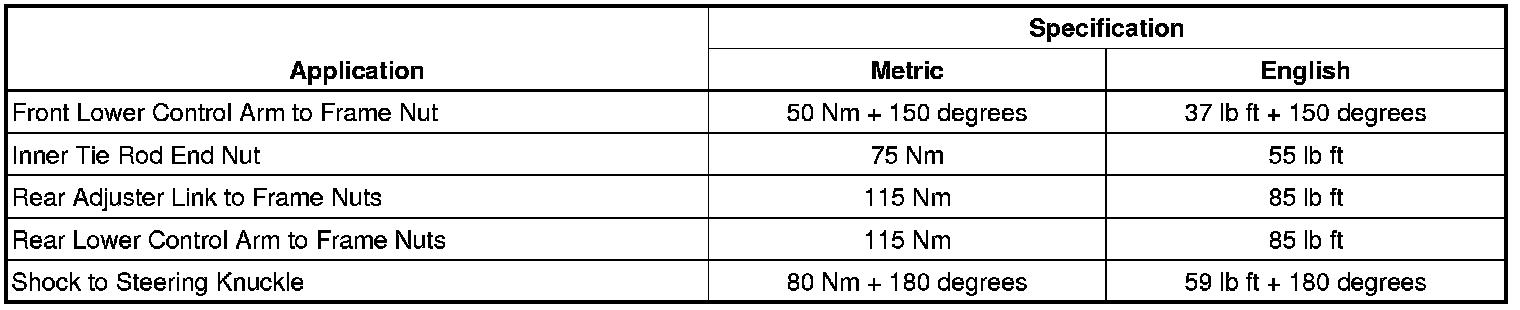 Fastener Tightening Specifications