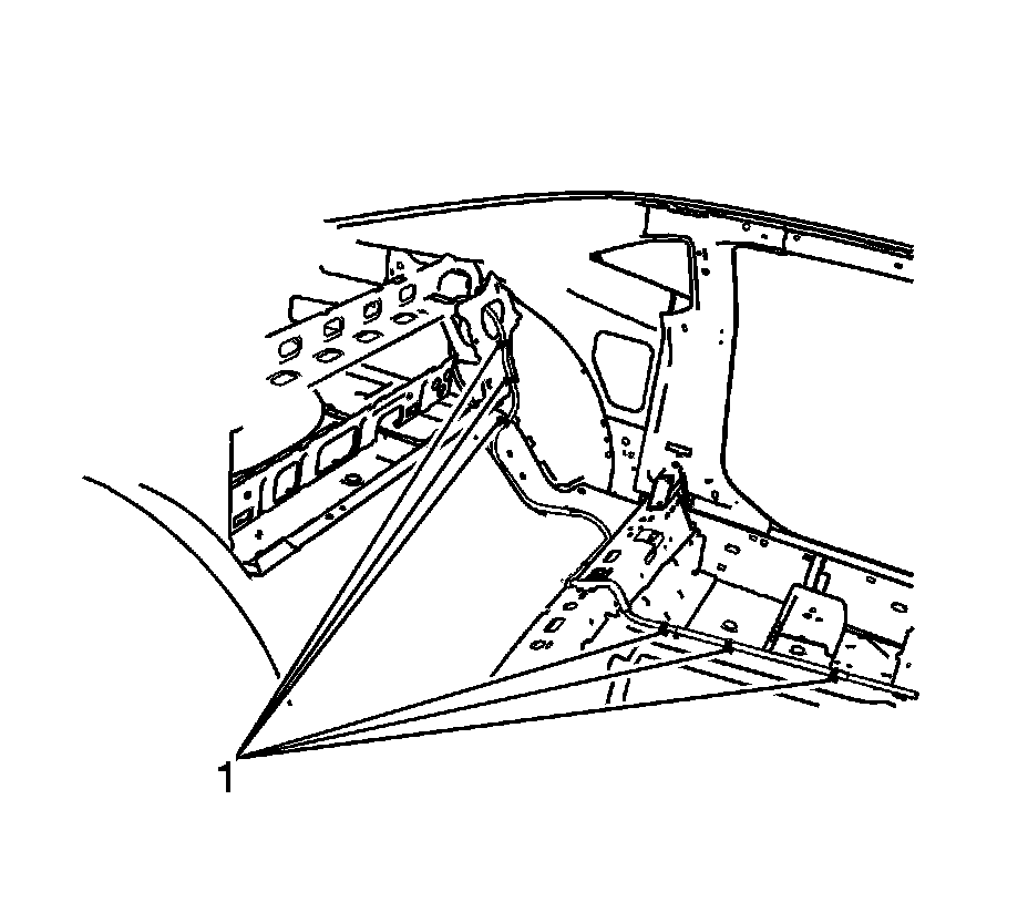 13. Working through the openings in the floor carpet, disconnect all remaining retainers (1).