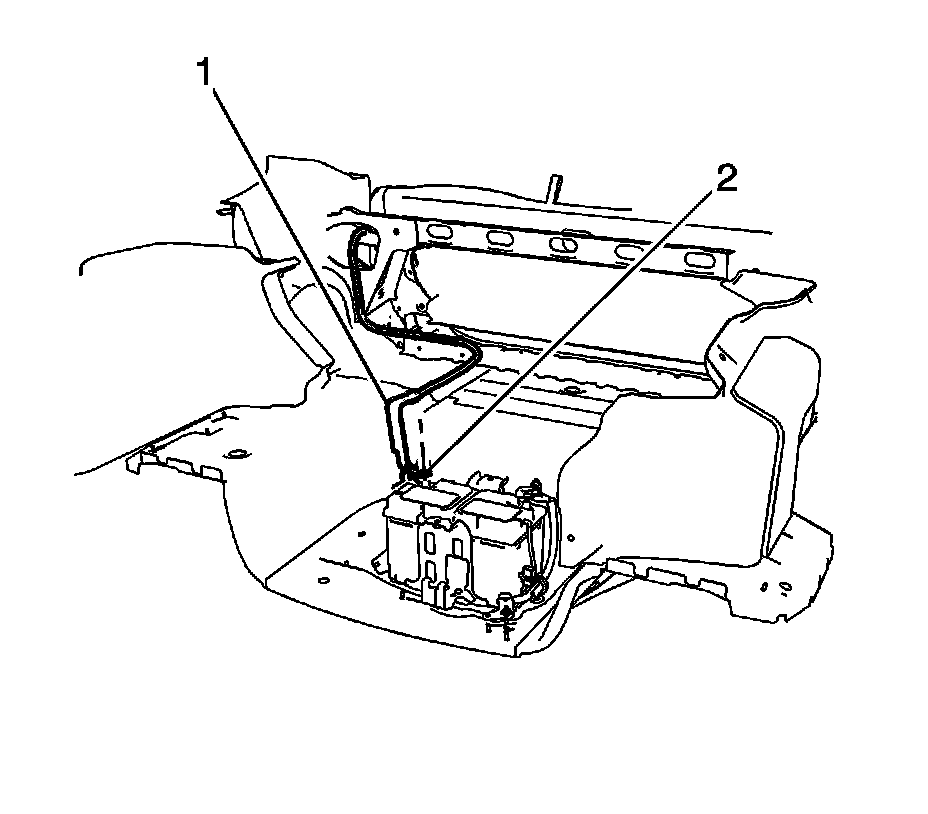 18. Pull the positive battery cable (1) from the passenger compartment into the trunk area.