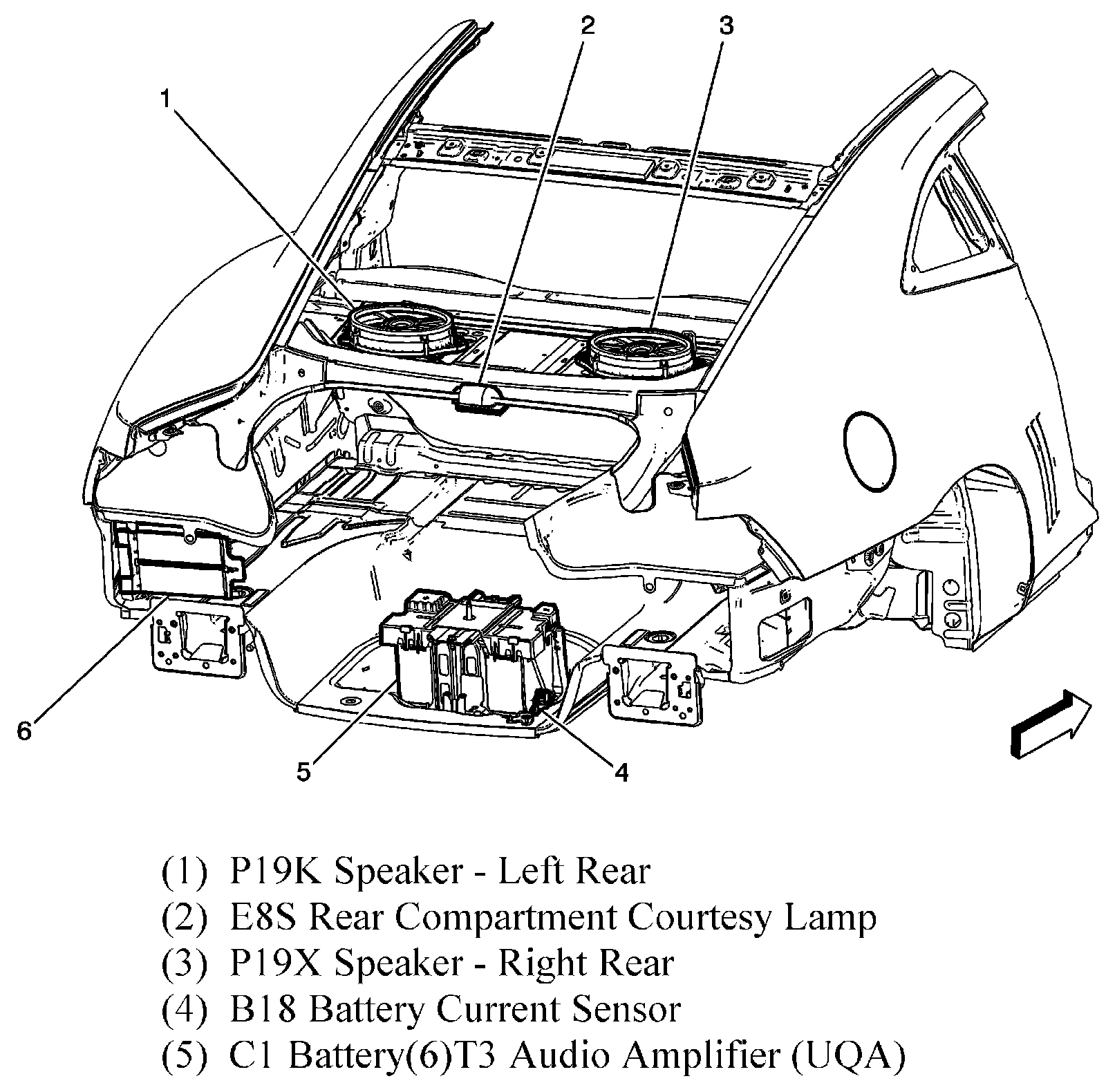 The Battery is located in the rear compartment, under the floor panel.