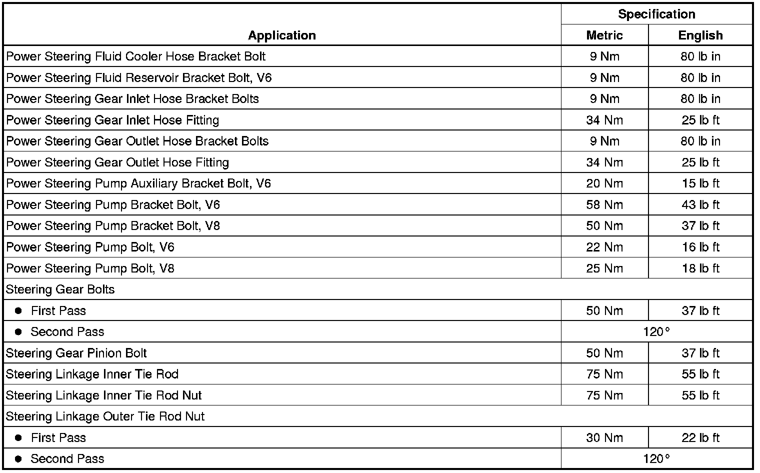 Fastener Tightening Specifications