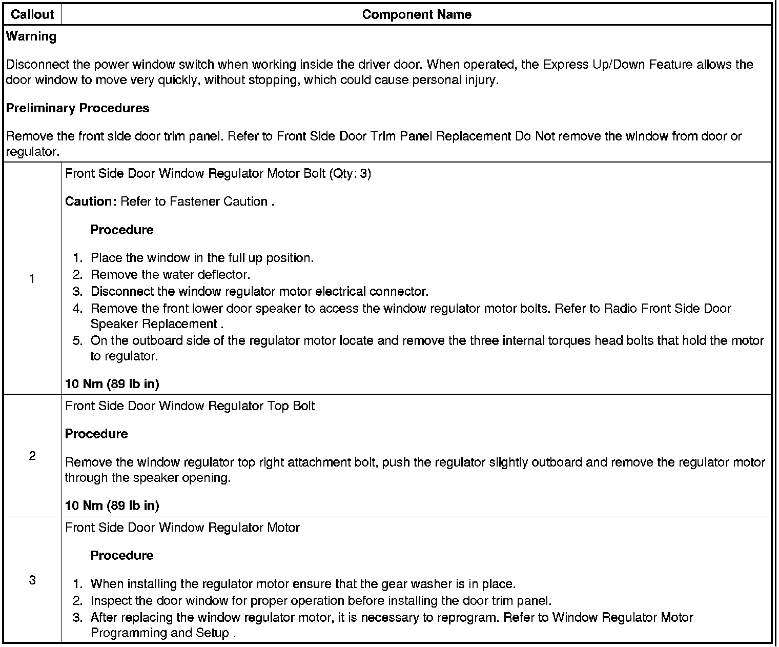 Front Side Door Window Regulator Motor Replacement