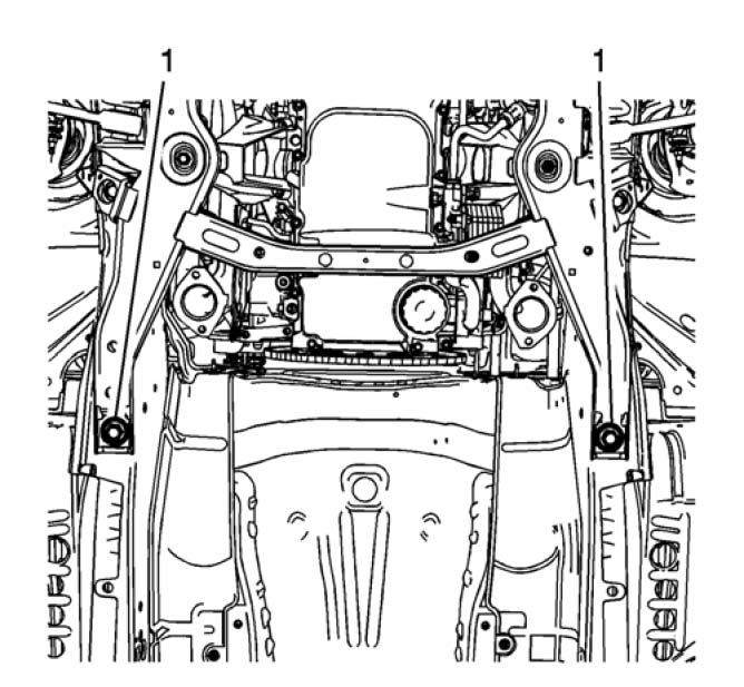 4. Install the front frame (1) mountings bolts and tighten to 160 Nm (118 lb ft).