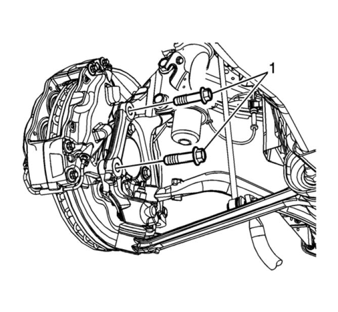 5. Install the rear frame (1) mountings bolts and tighten to 240 Nm (177 lb ft).