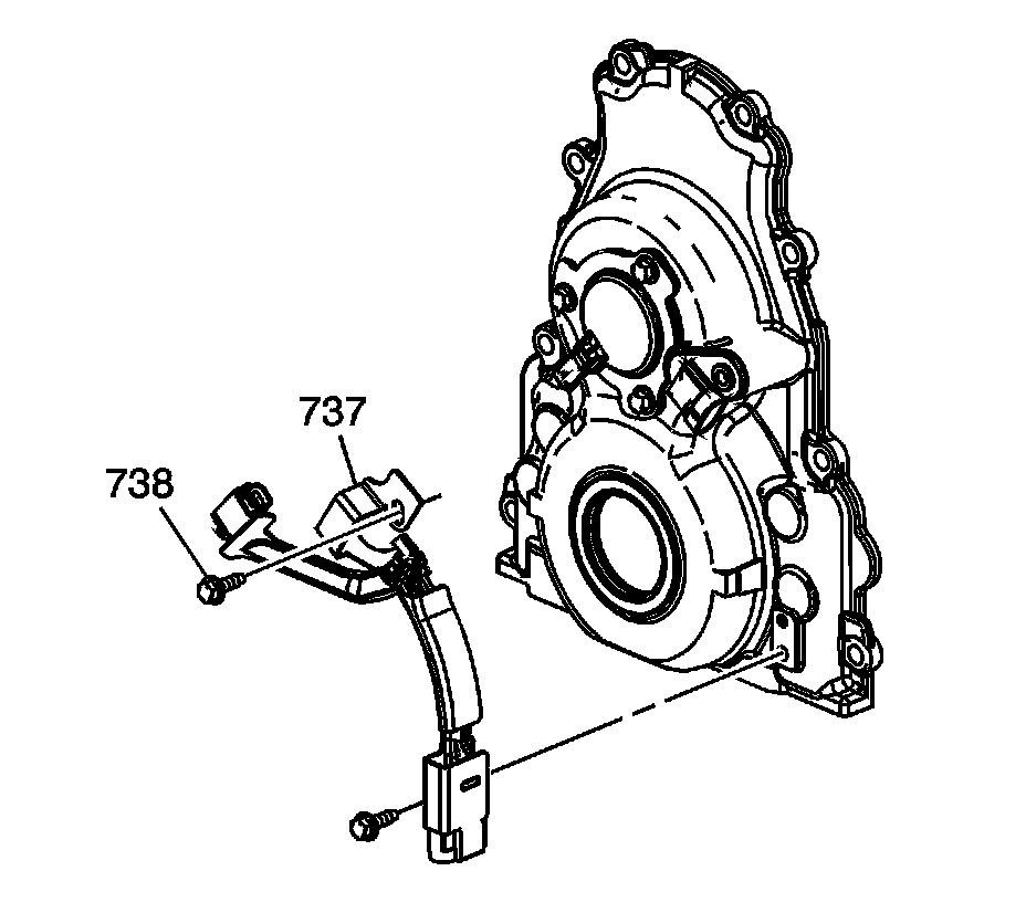 4. Loosen the camshaft position sensor/actuator wire harness bracket bolts (738) and reposition or remove the bracket (737) as required.