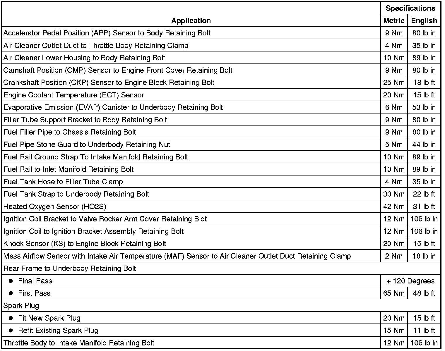 Fastener Tightening Specifications