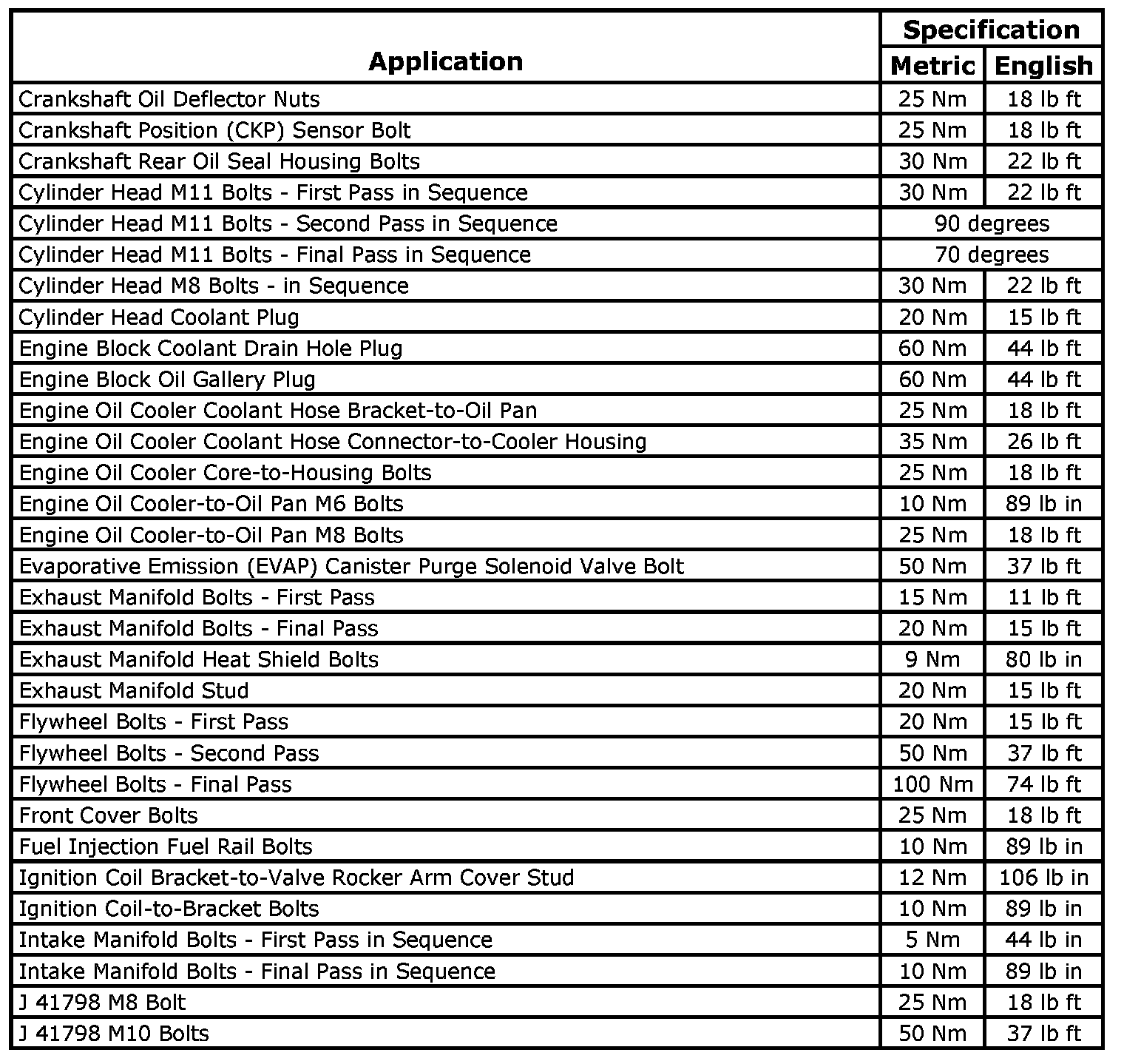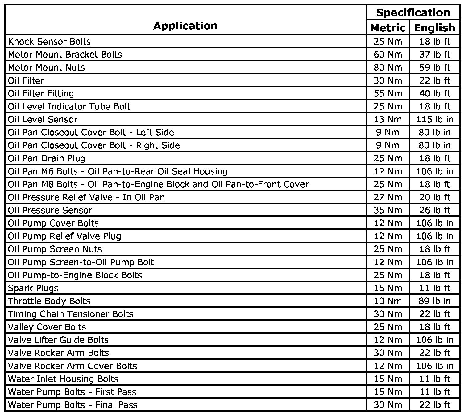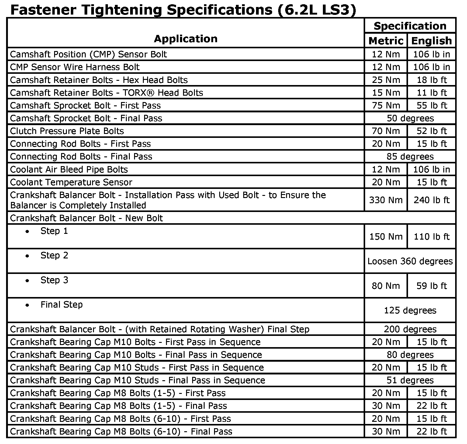 Fastener Tightening Specifications