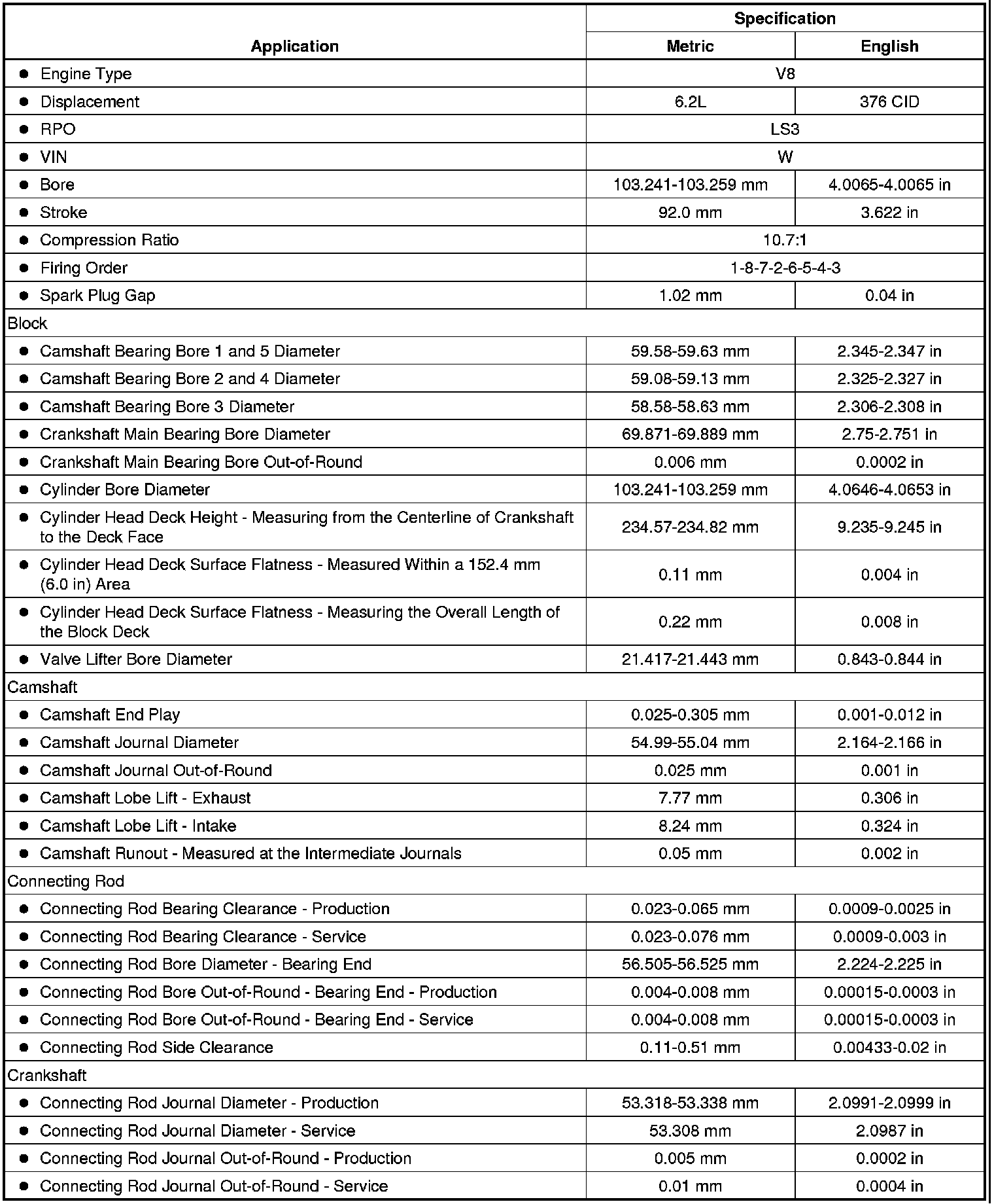 (With Engine VIN W, RPO LS3)