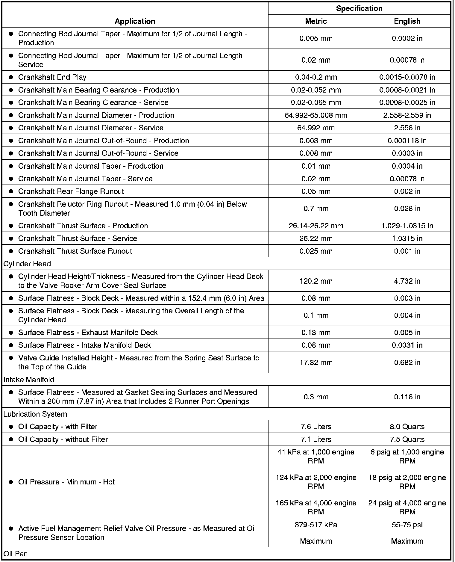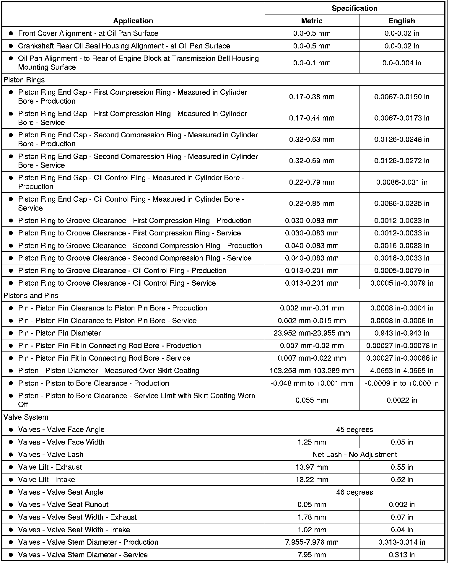 Engine Mechanical Specifications