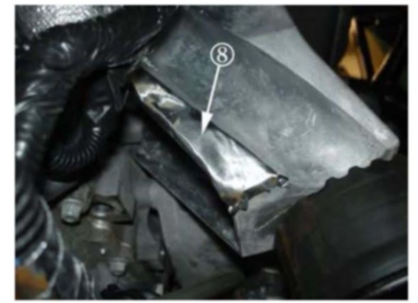 12. Apply the butyl patch (8) to the contact area of the motor mount (6).