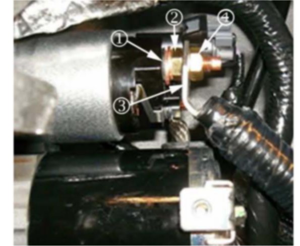 5. Remove starter terminal nut and the battery starter cable from the starter terminal.