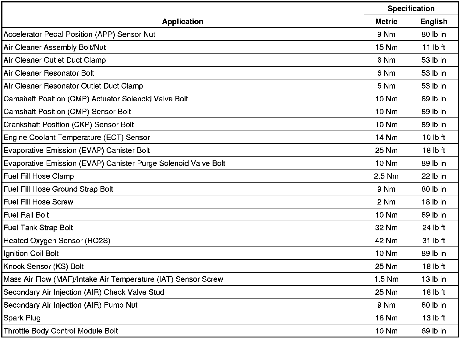 Fastener Tightening Specifications