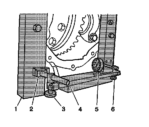 5. Install the J 8001-1 (2), the J 8001-2 (3), the J 34178 - adapter (4, 6), and the J 8001-3 (5) as shown.