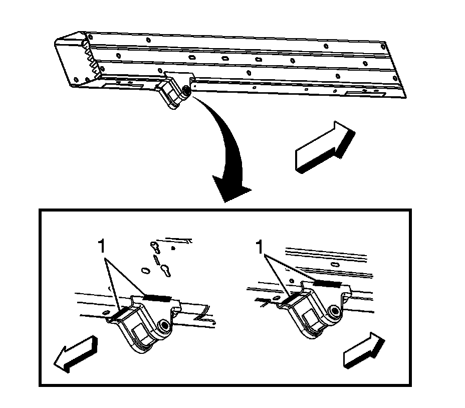 2.Position the tow hook (1) to the passenger side of the impact bar.
