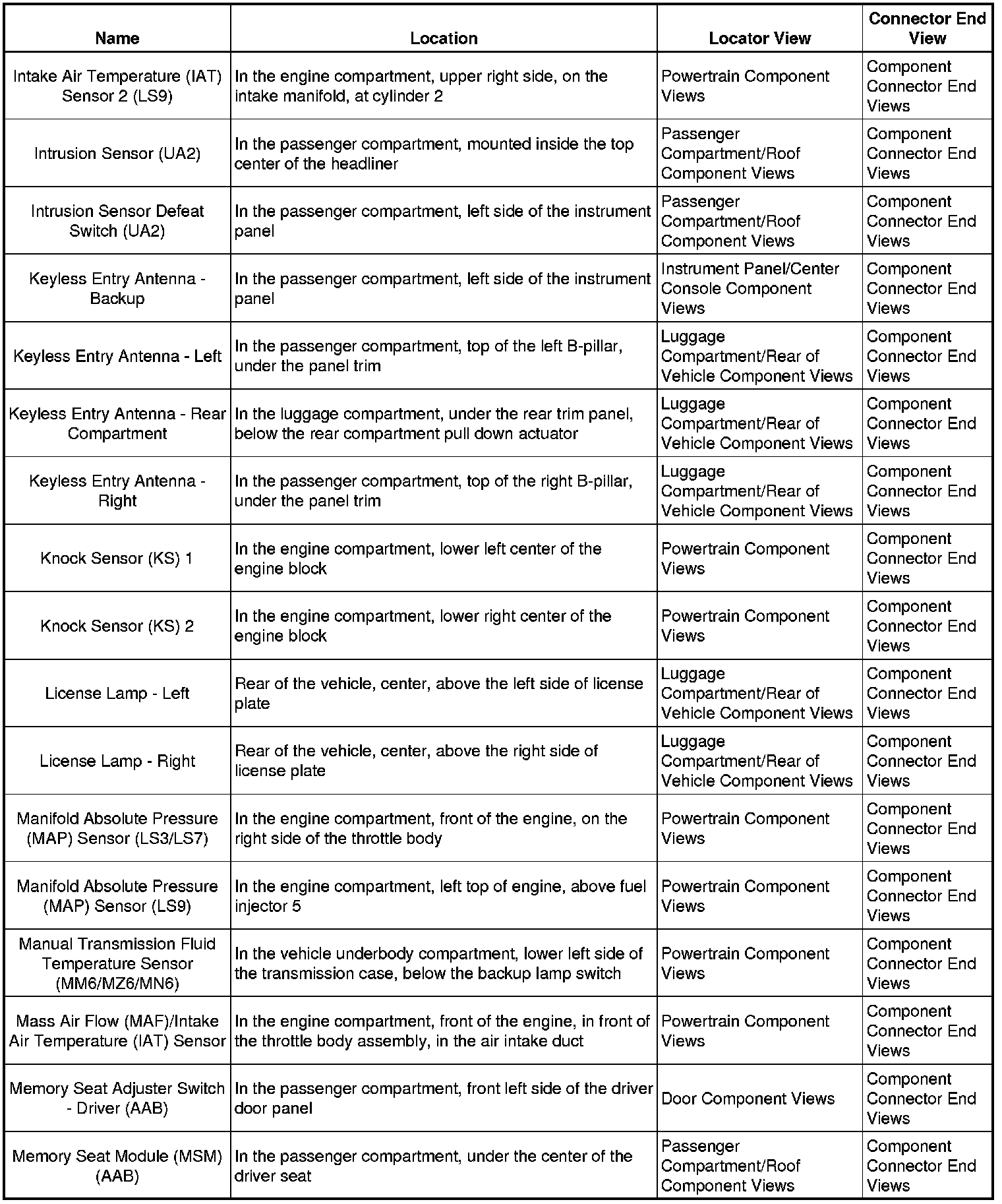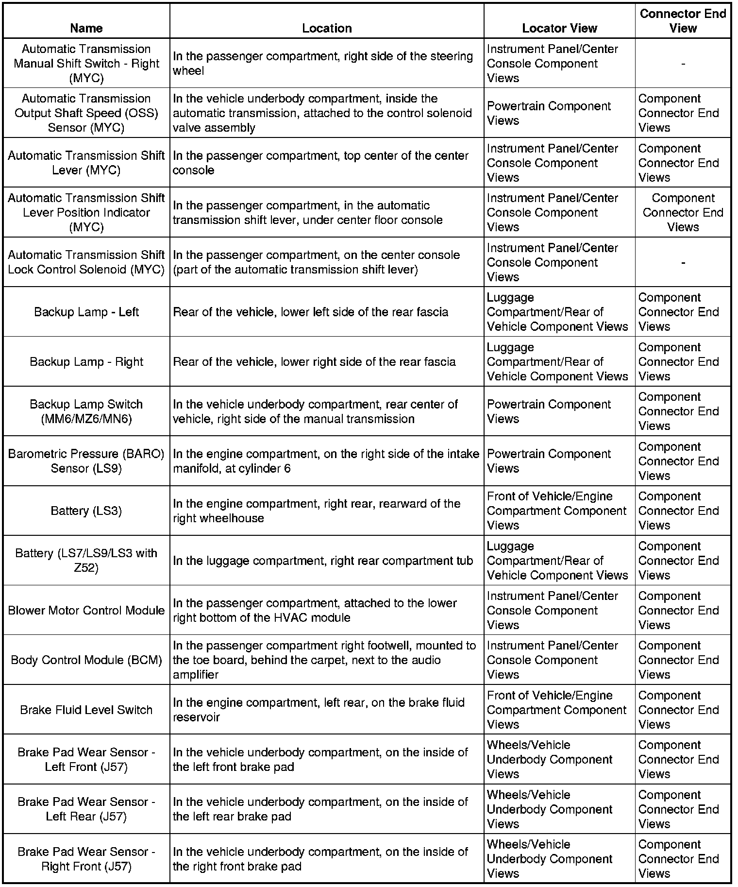 Master Electrical Component List