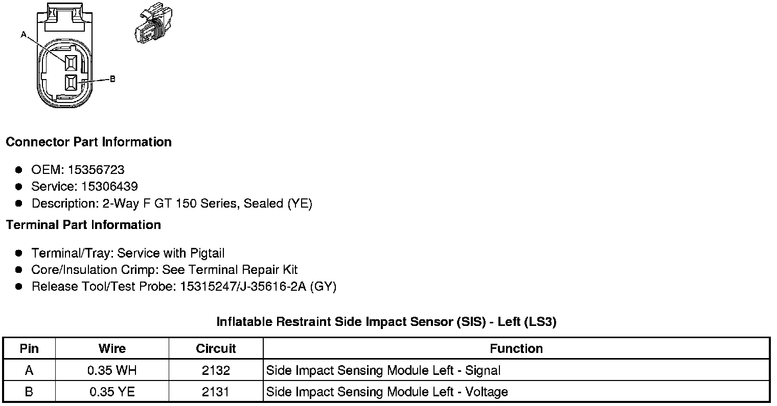 Inflatable Restraint Side Impact Sensor (SIS) - Left (LS3)