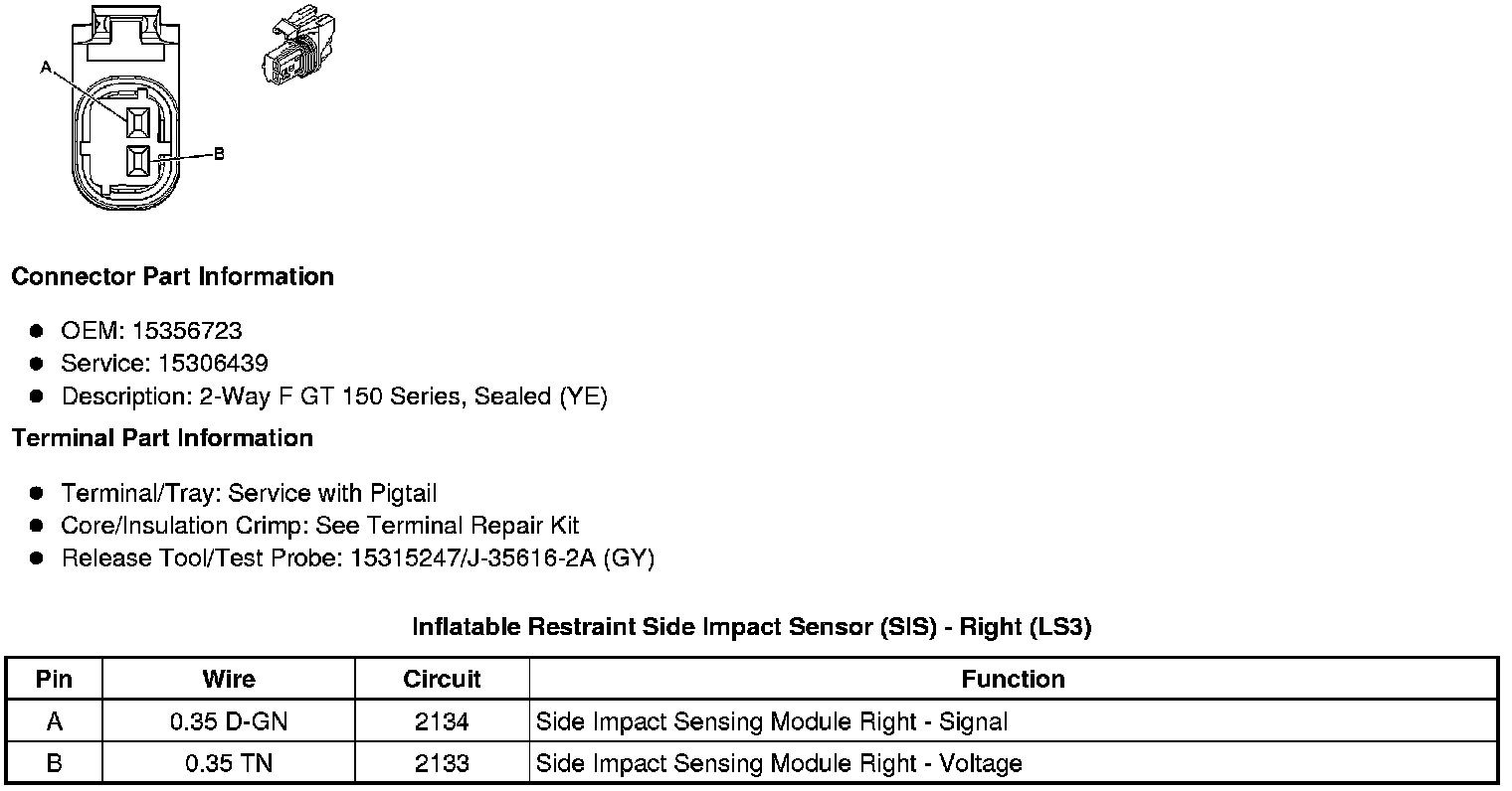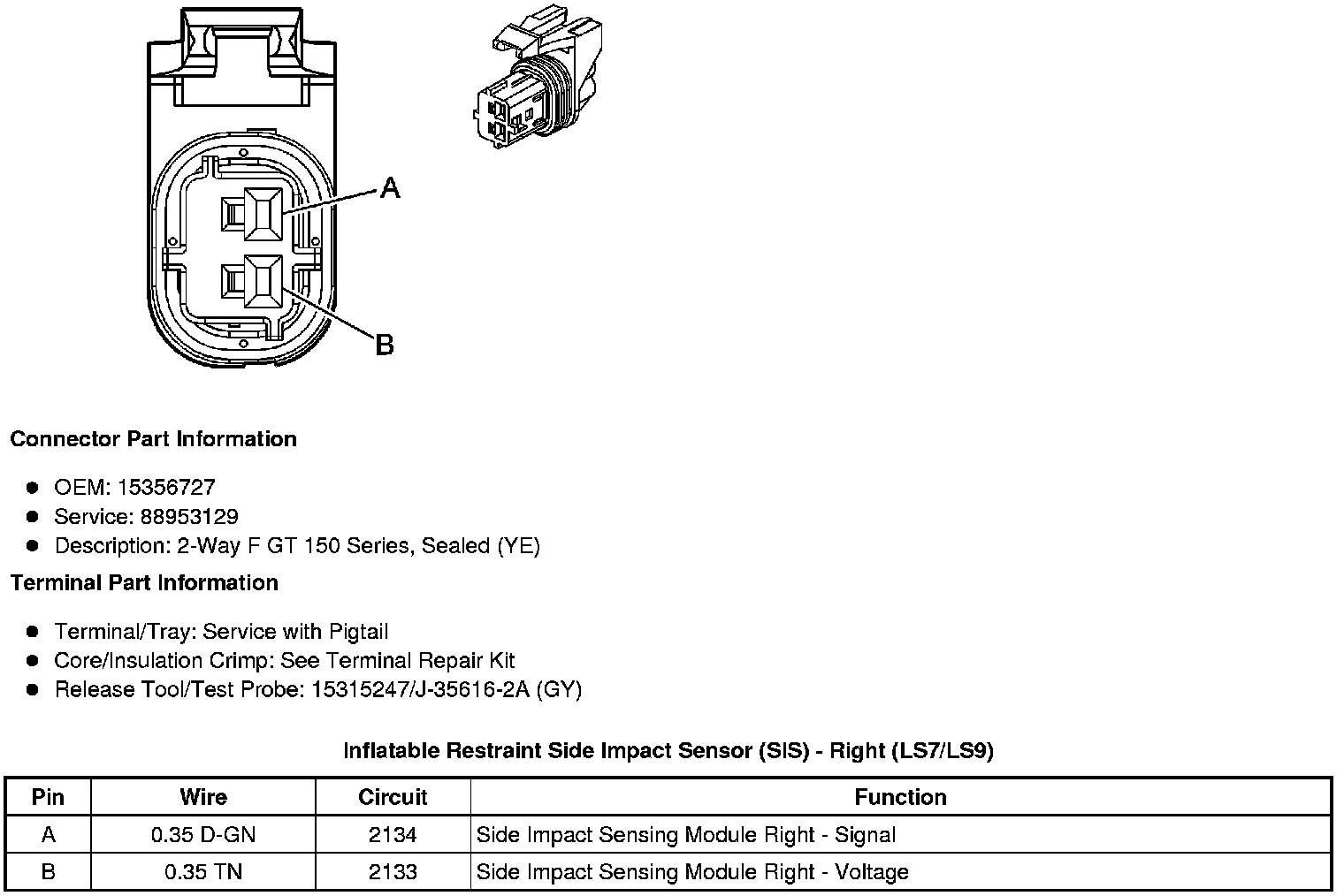 Inflatable Restraint Side Impact Sensor (SIS) - Right (LS3)
