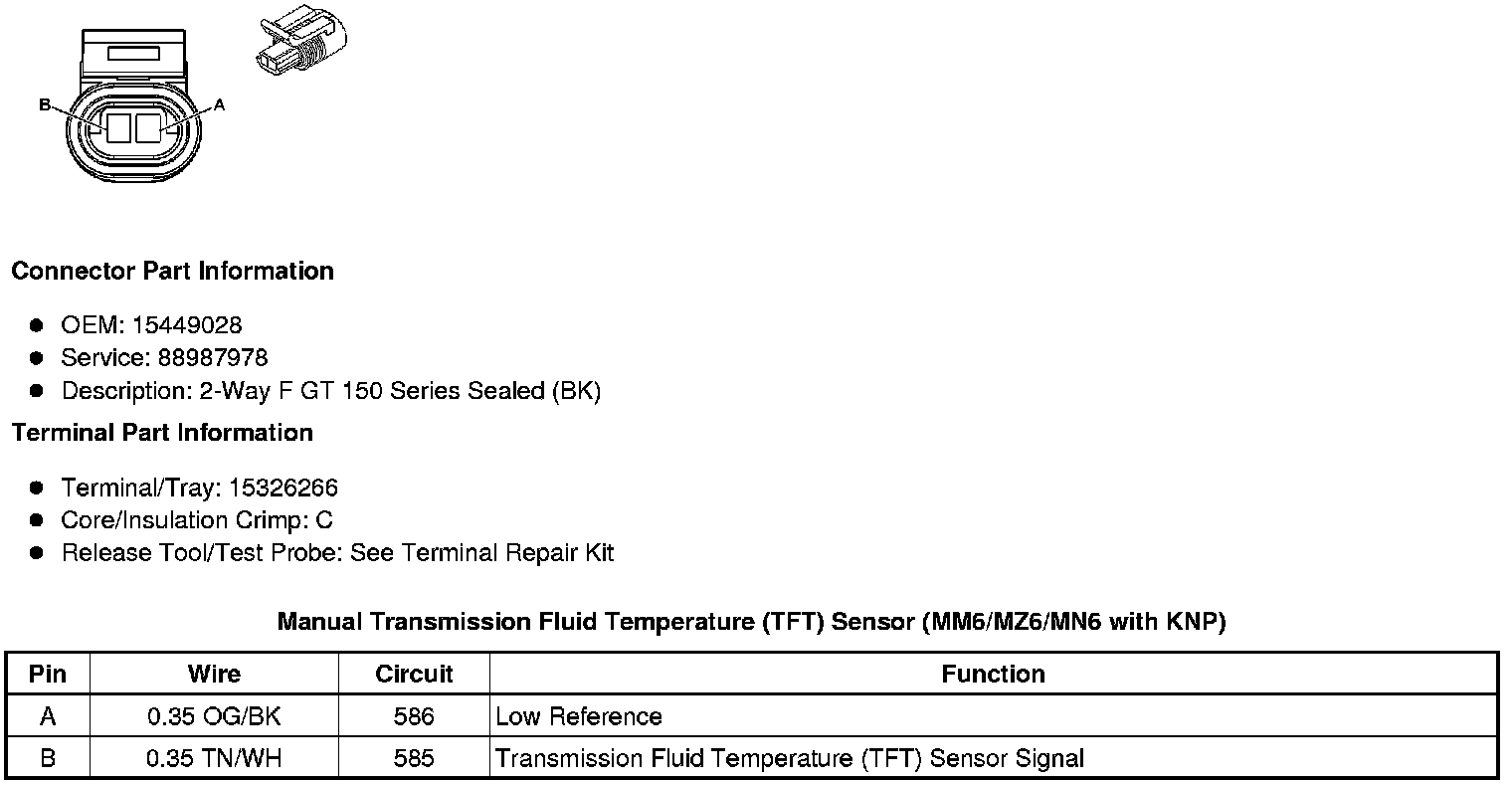 Manual Transmission Fluid Temperature (TFT) Sensor (MM6/MZ6/MN6 with KNP)