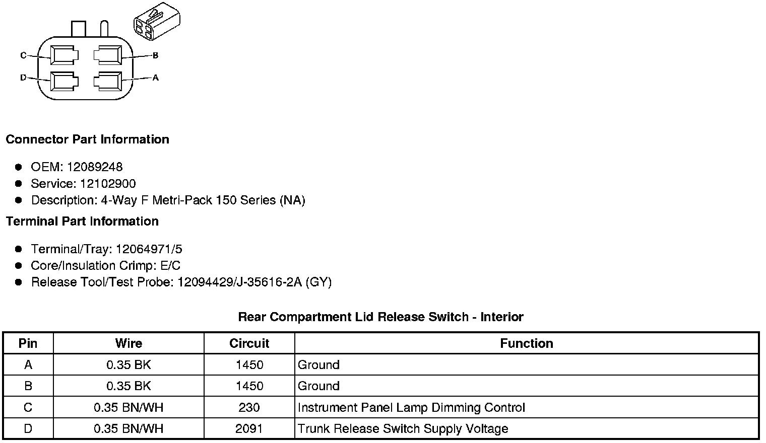 Rear Compartment Lid Lock Cylinder Key Switch (CO5/CM7)