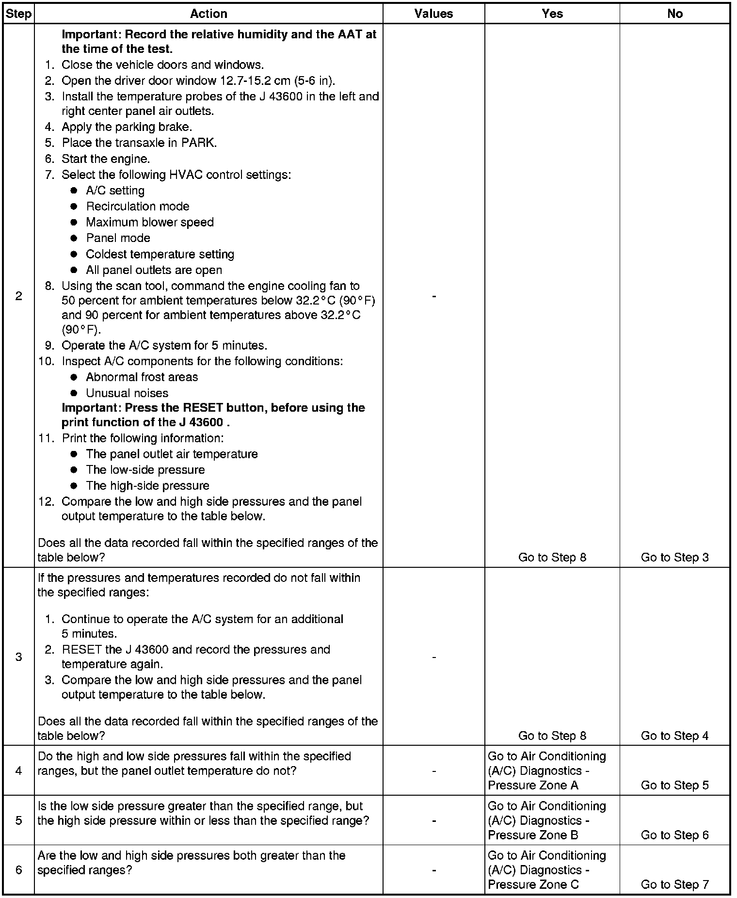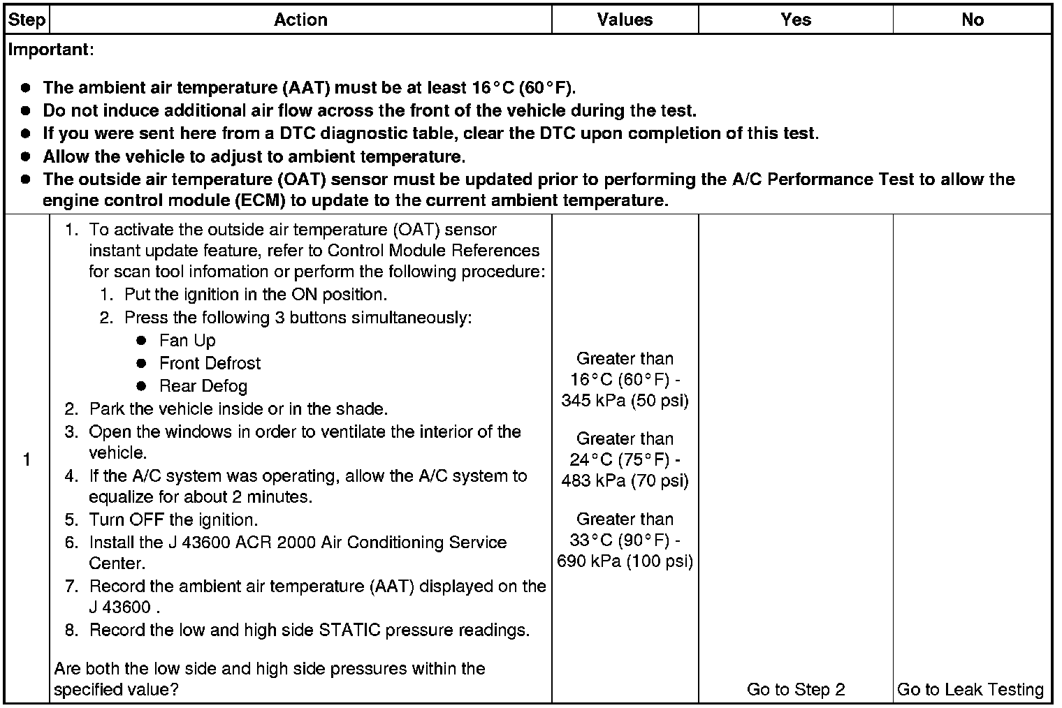 1. This step determines if the A/C system has at least the minimum refrigerant charge required to operate the system without damage.