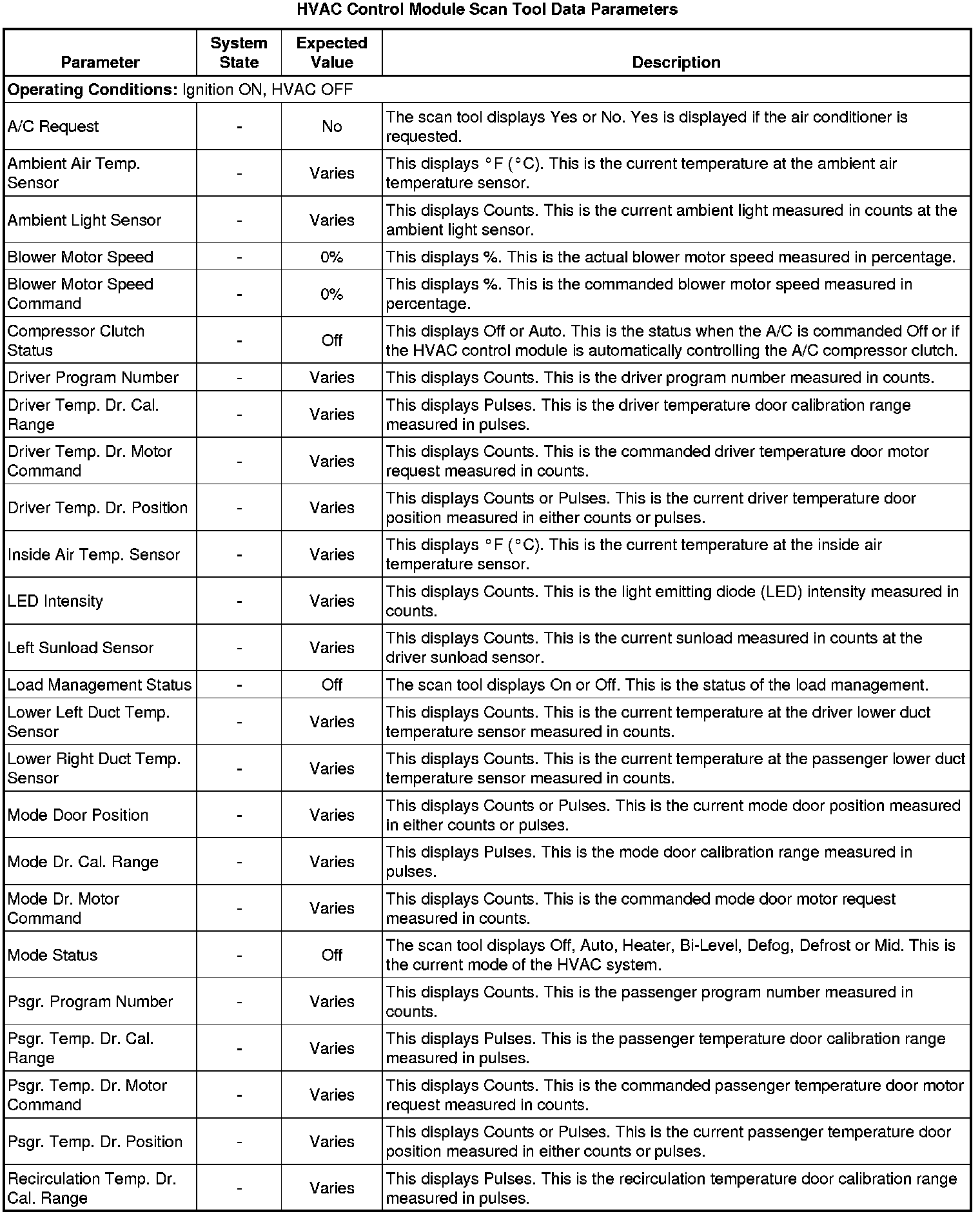 Heating, Ventilation and Air Conditioning Control Module Scan Tool Information