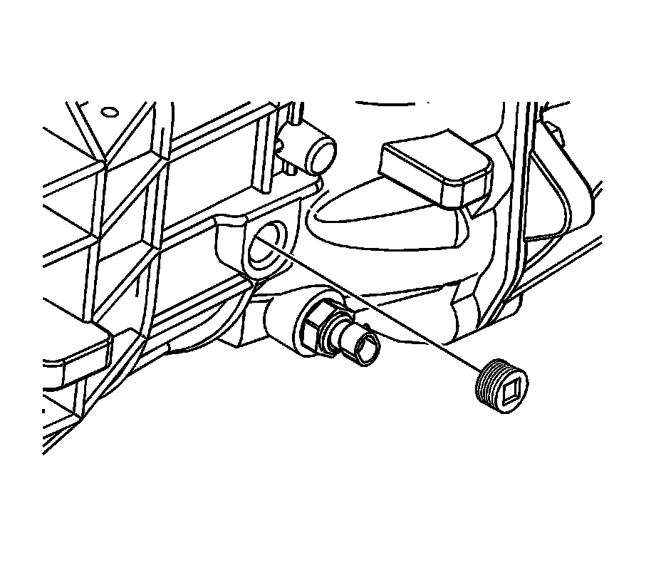 4. Fill the transmission with manual transmission fluid, until even with the bottom of the fill plug hole. For fluid recommendations, refer to Adhesives, Fluids, Lubricants, and Sealers (Adhesives, Fluids, Lubricants, and Sealers).