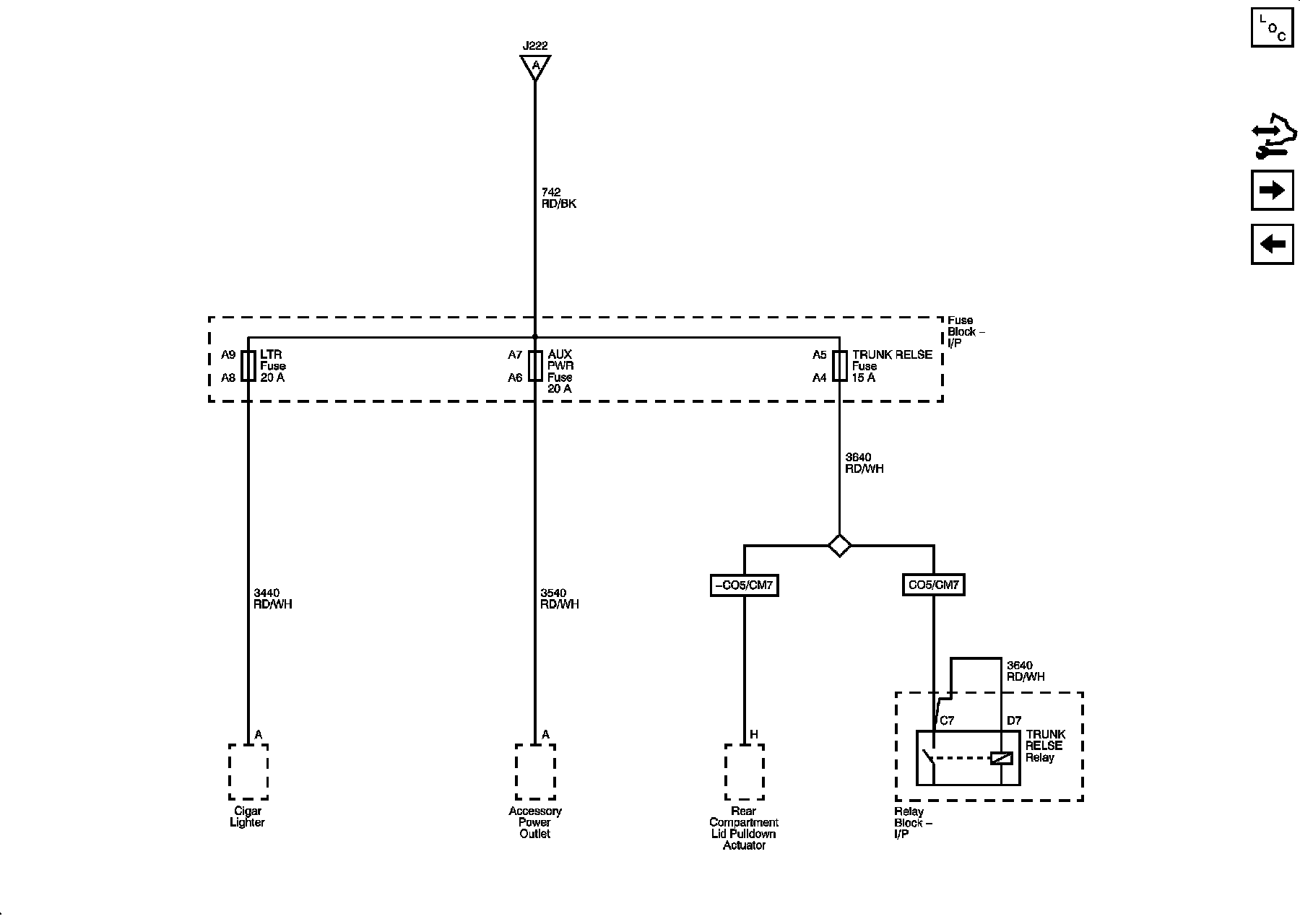 AUX PWR, LTR, and TRUNK RELSE Fuses