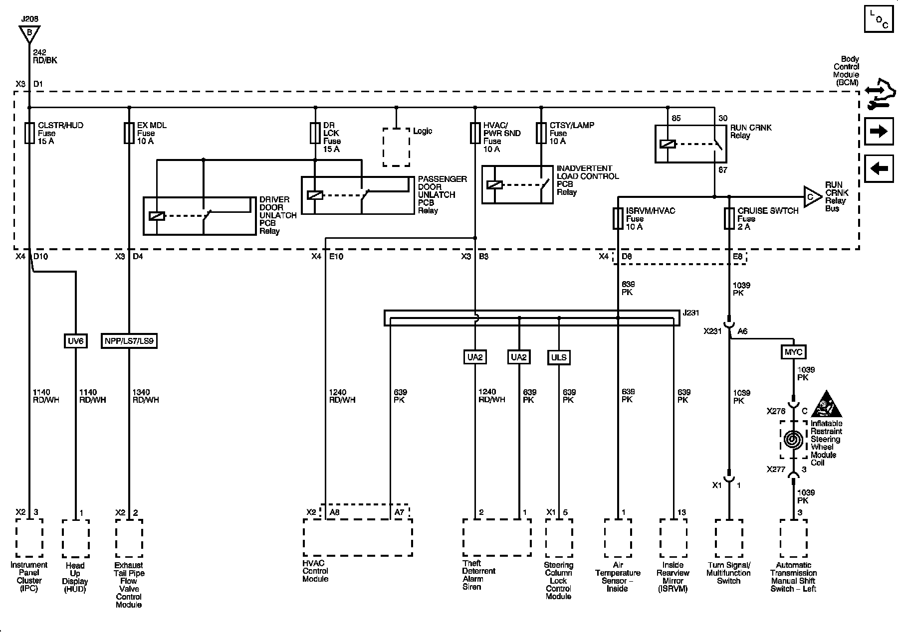 CLSTR/HUD, CRUISE SWTCH, CTSY/LAMP, DR LCK, EXH MDL, HVAC/PWR SND, and ISRVM/HVAC Fuses