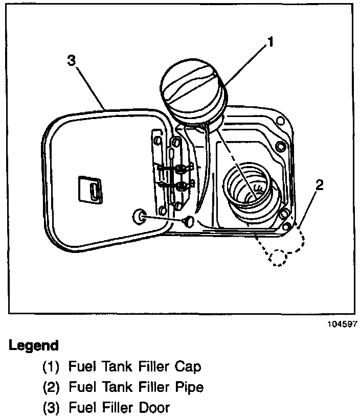 Caution: Use a fuel tank filler pipe cap with the same features as the original when a replacement is necessary. Failure to use the correct fuel tank filler pipe cap can result in a serious malfunction of the fuel system.