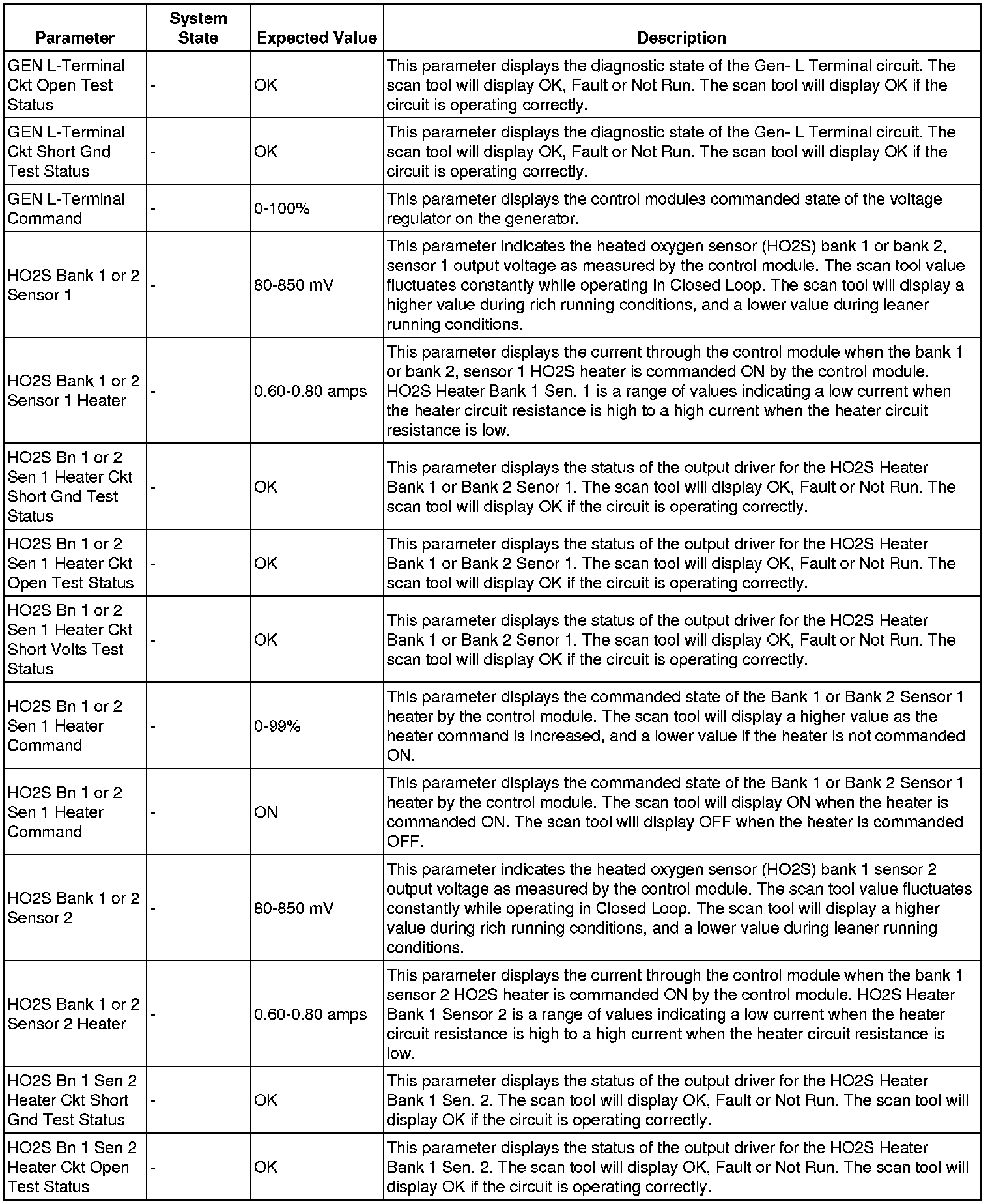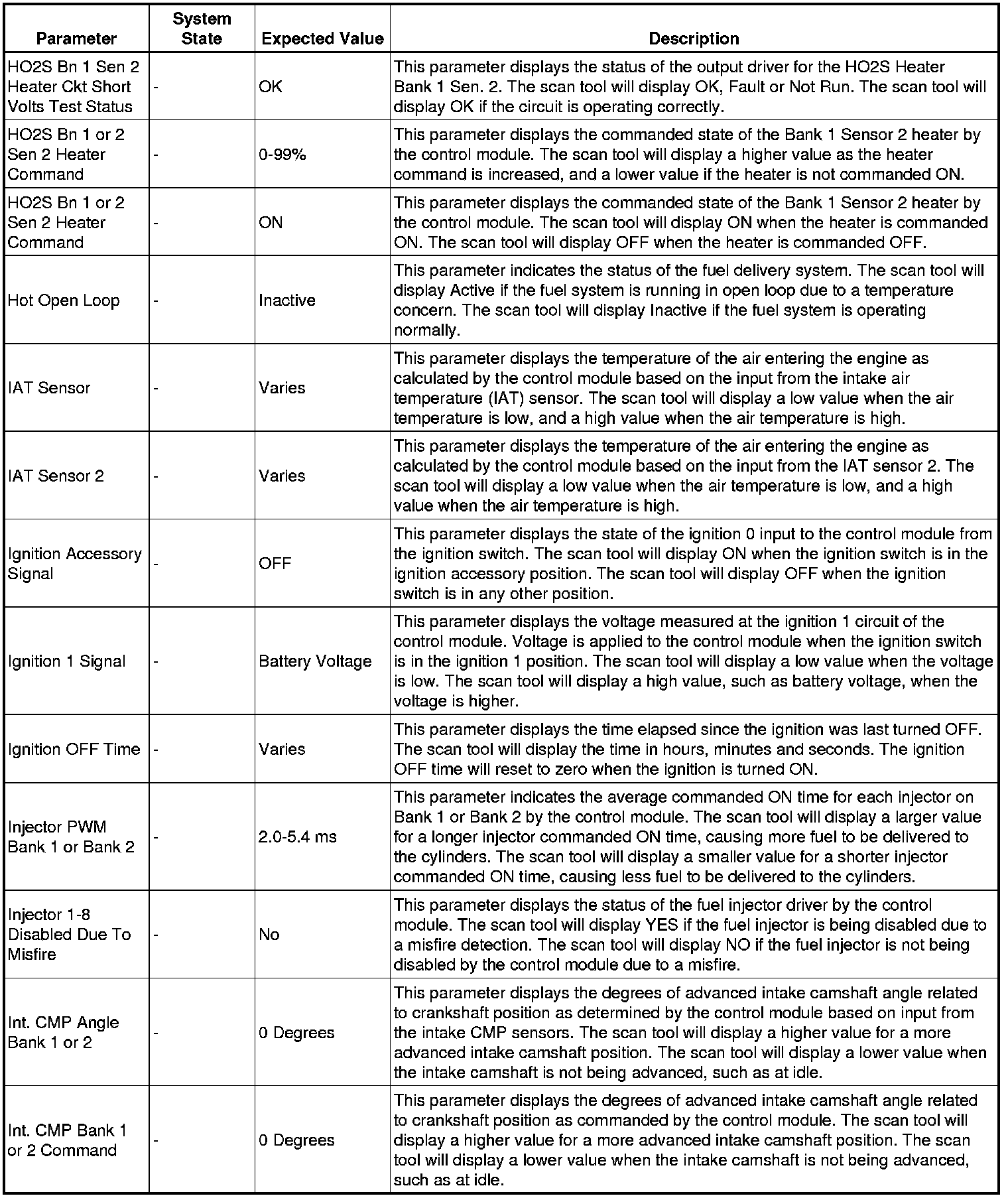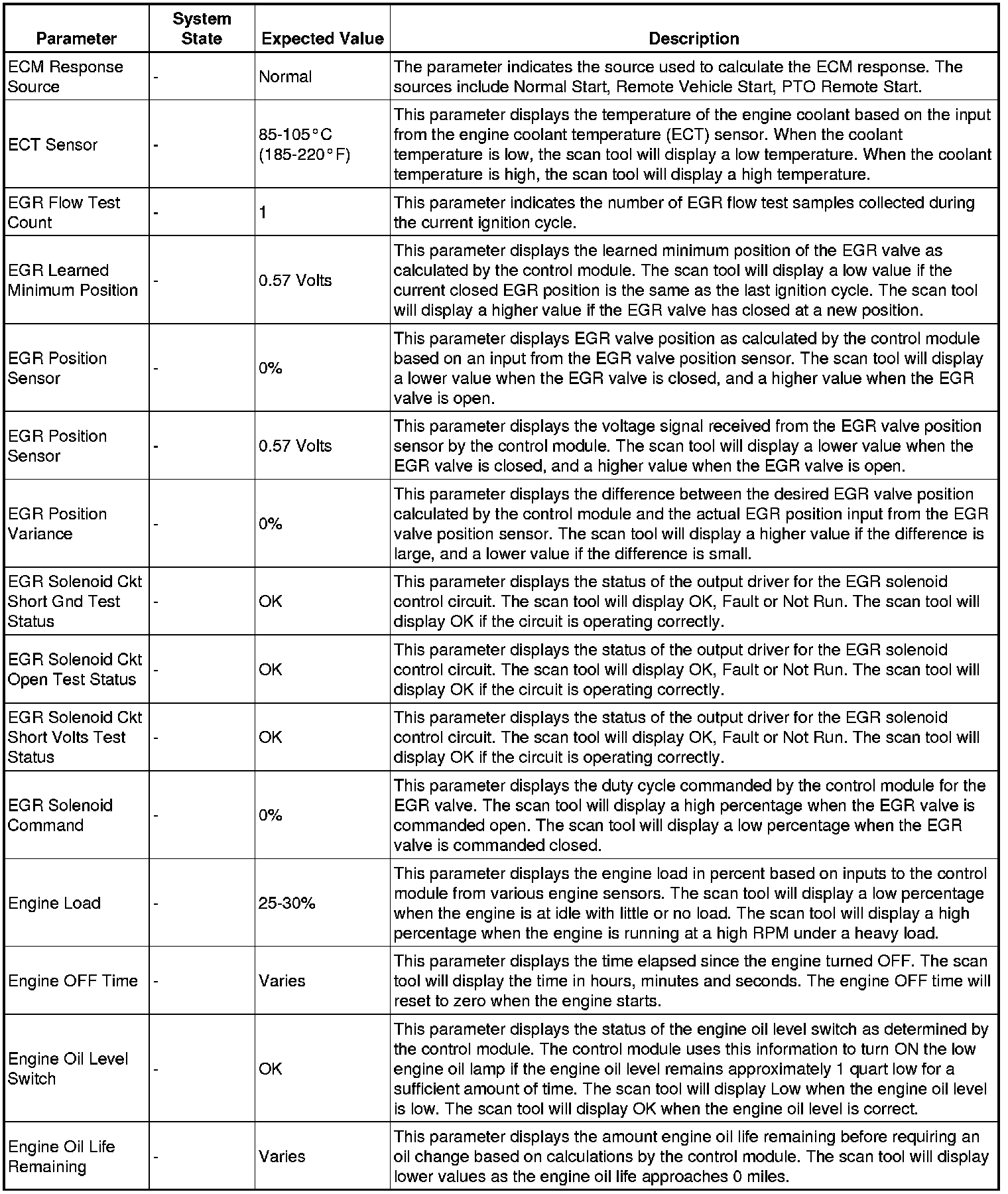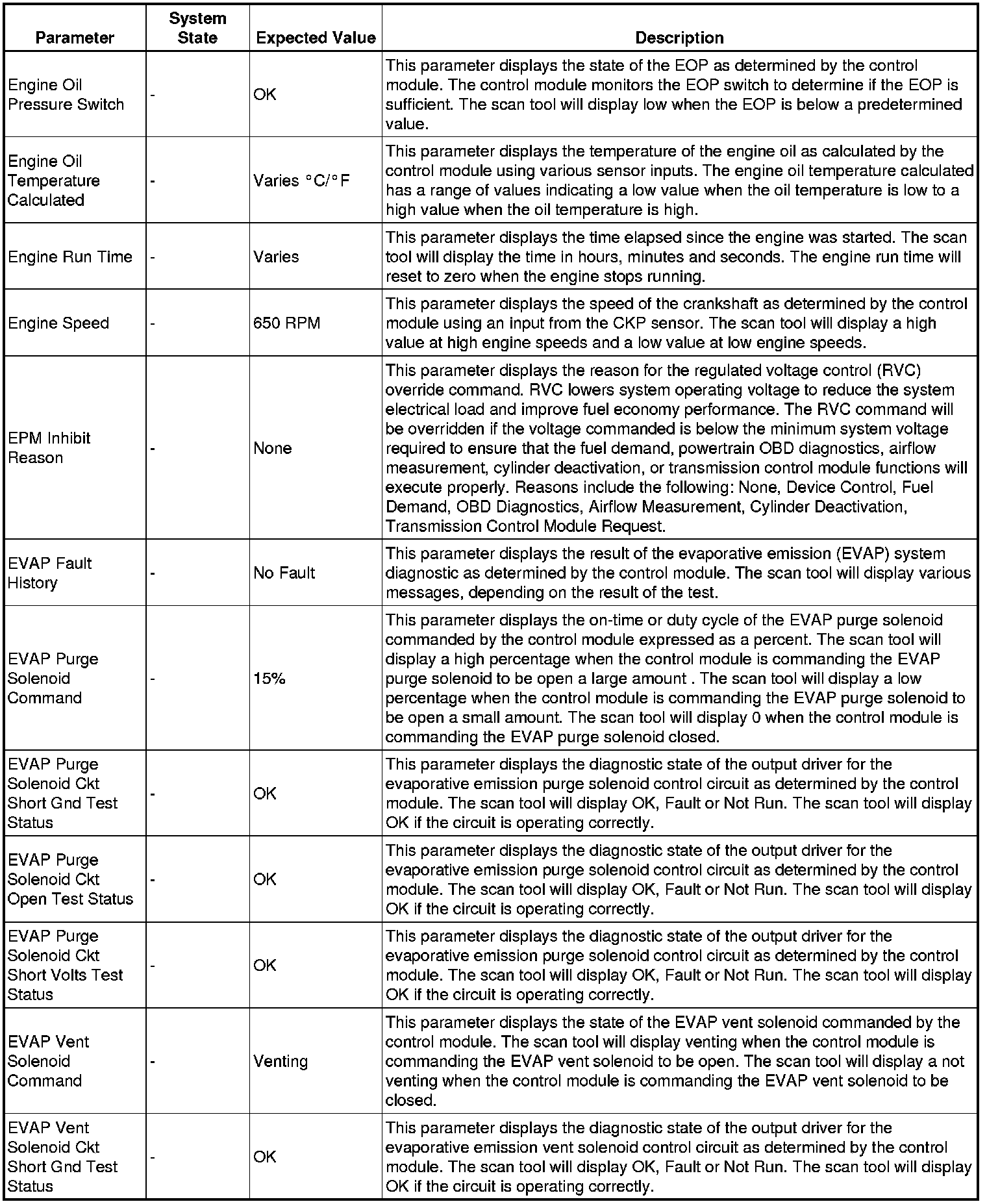 The Engine Control Module Scan Tool Data List contains all engine-related parameters that are available on the scan tool. The list is arranged in alphabetical order. A given parameter may appear in any one of the data lists, and in some cases may appear more than once, or in more than one data list in order to group certain related parameters together.