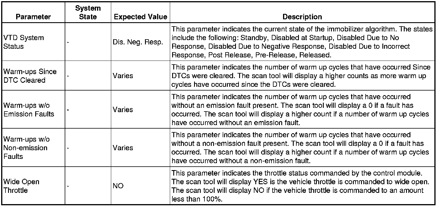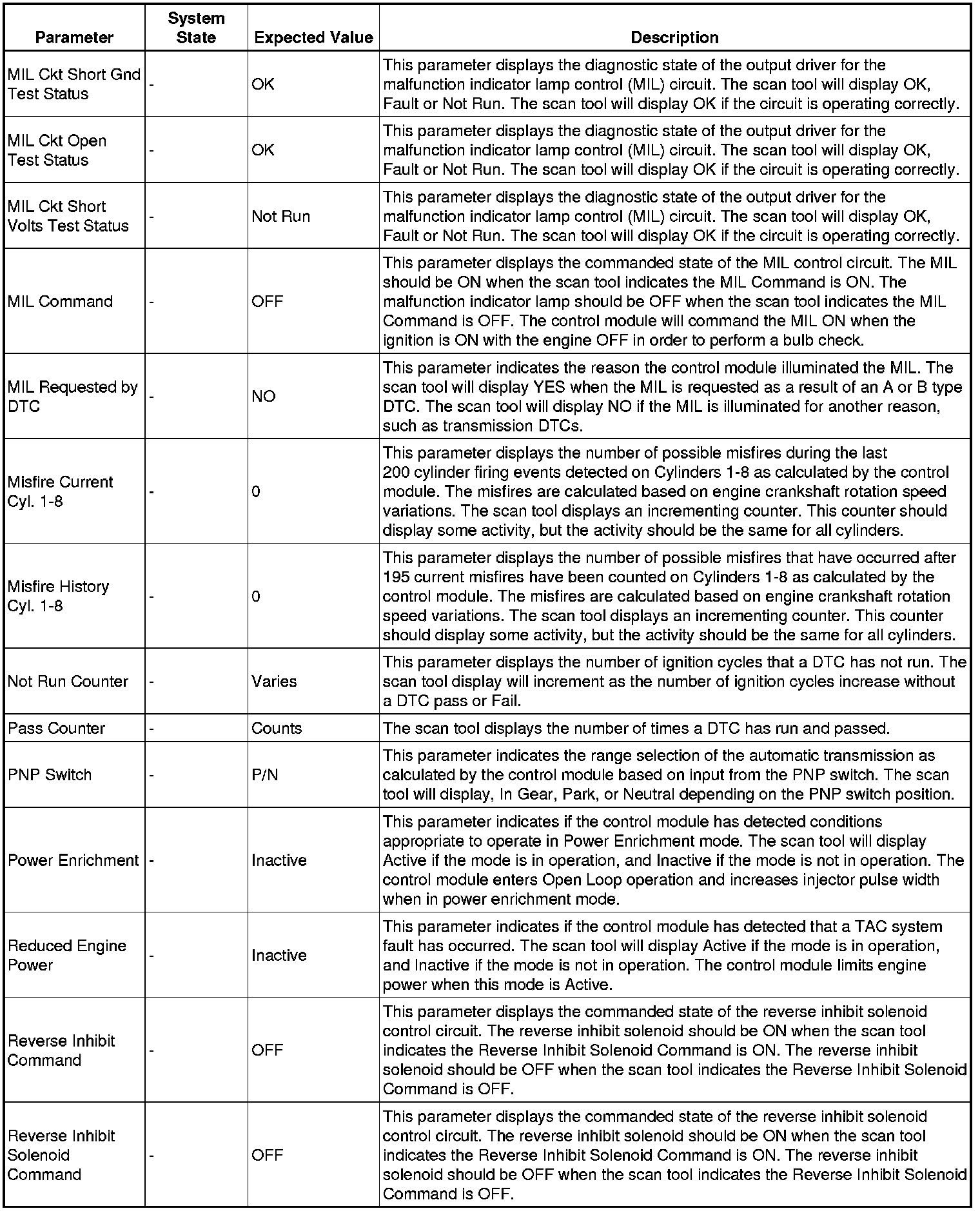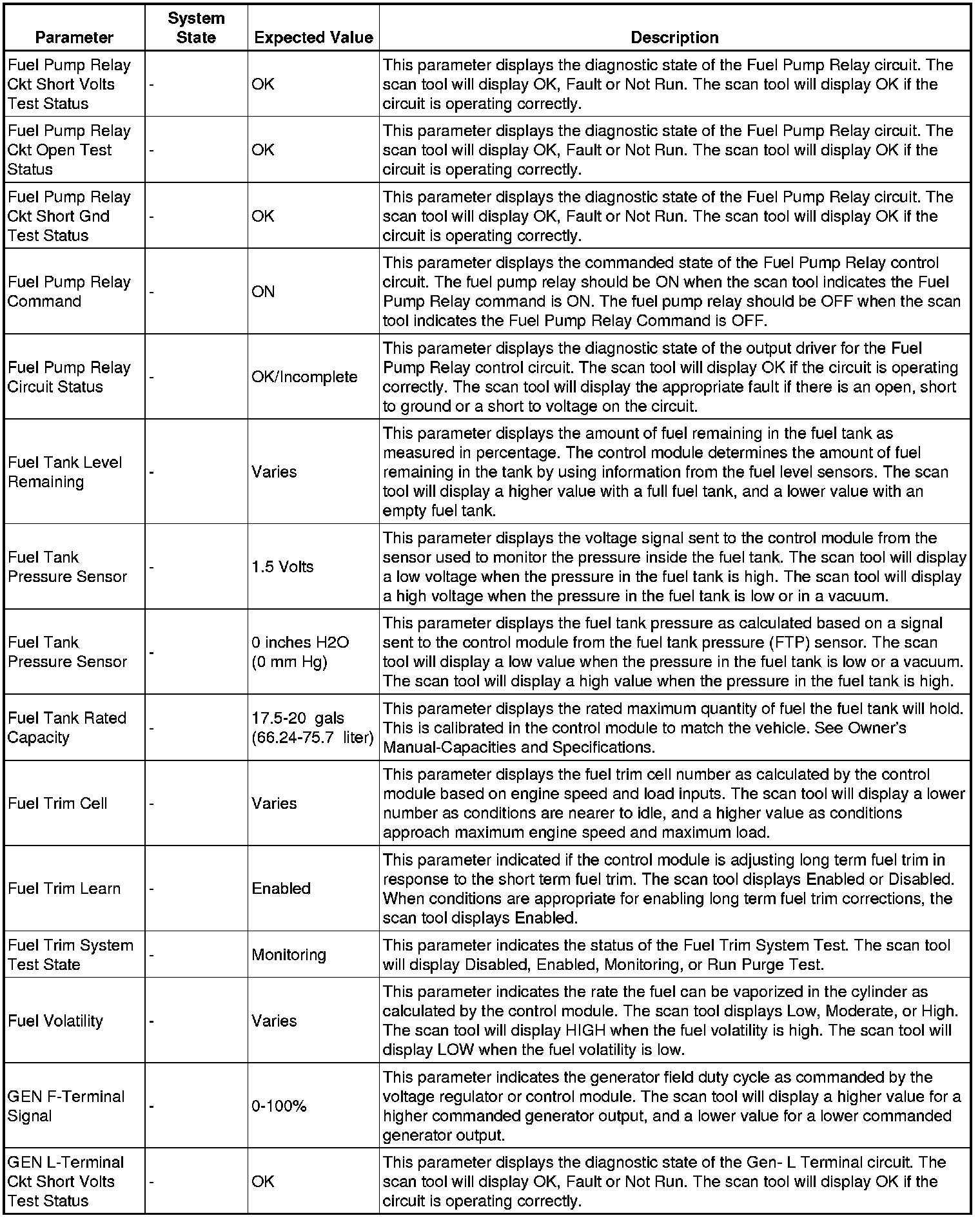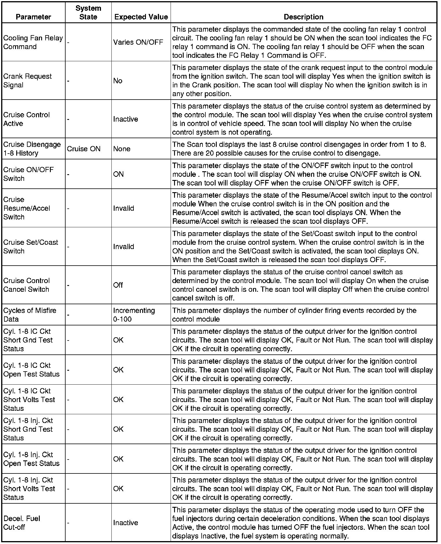 The Engine Control Module Scan Tool Data List contains all engine-related parameters that are available on the scan tool. The list is arranged in alphabetical order. A given parameter may appear in any one of the data lists, and in some cases may appear more than once, or in more than one data list in order to group certain related parameters together.
