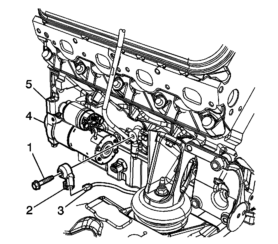 5. Install the starter assembly (4), ONLY IF REMOVED. Refer to Starter Replacement (Service and Repair).