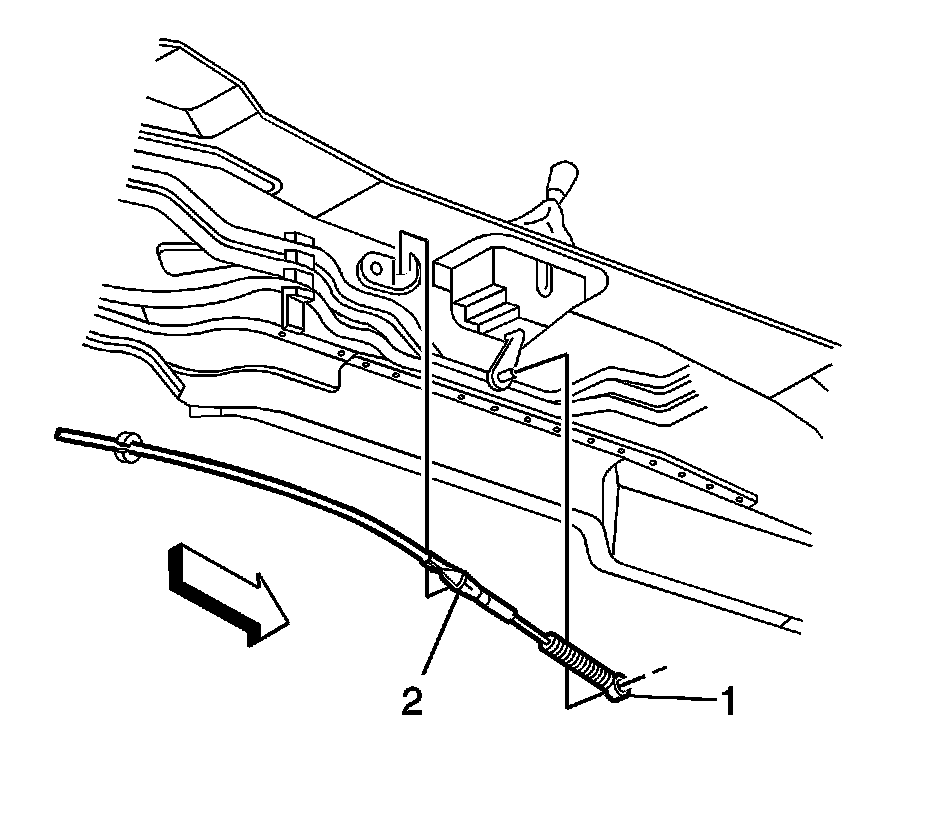 1. Position and install the shift control cable (2) to the driveline tunnel bracket.