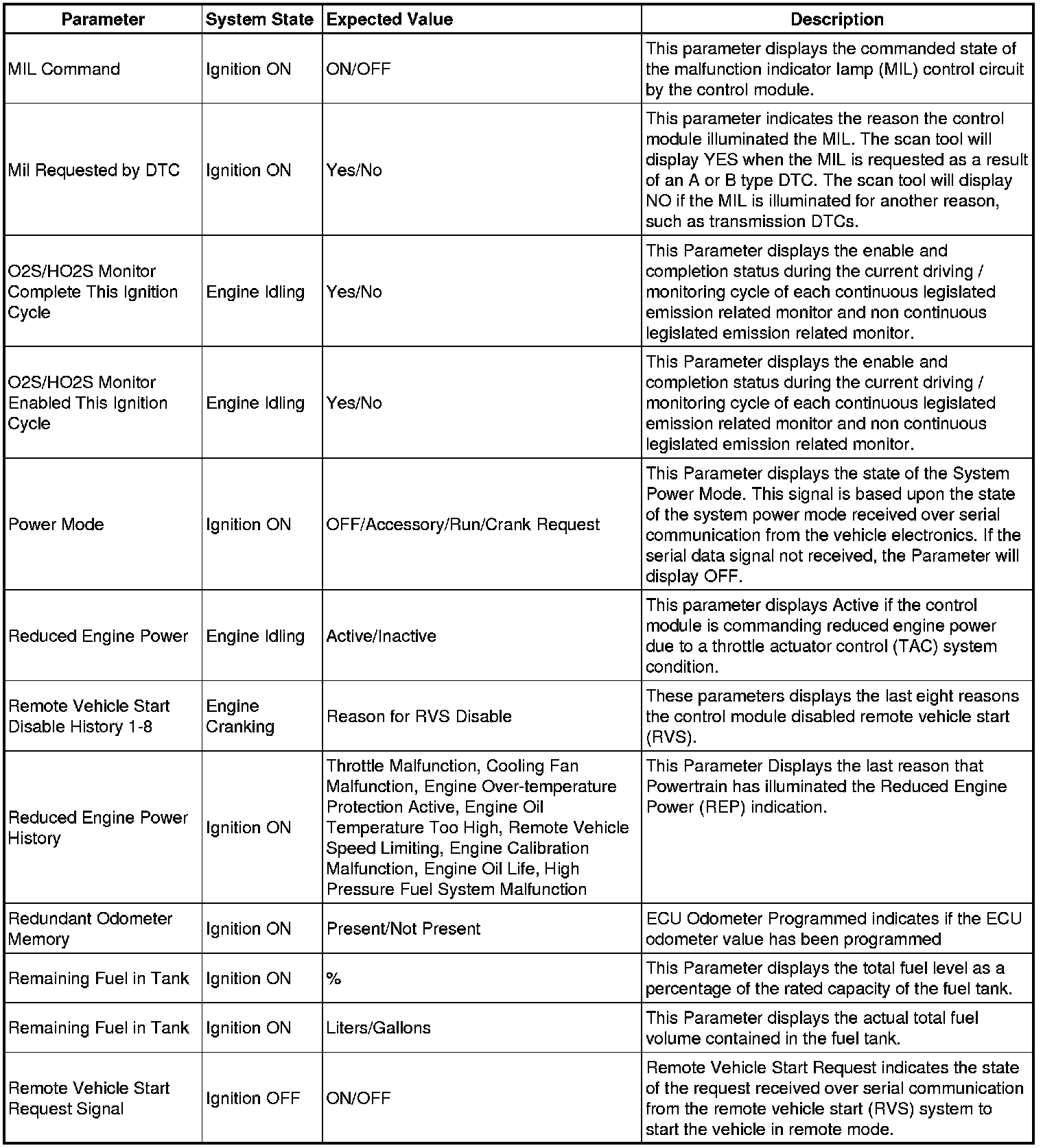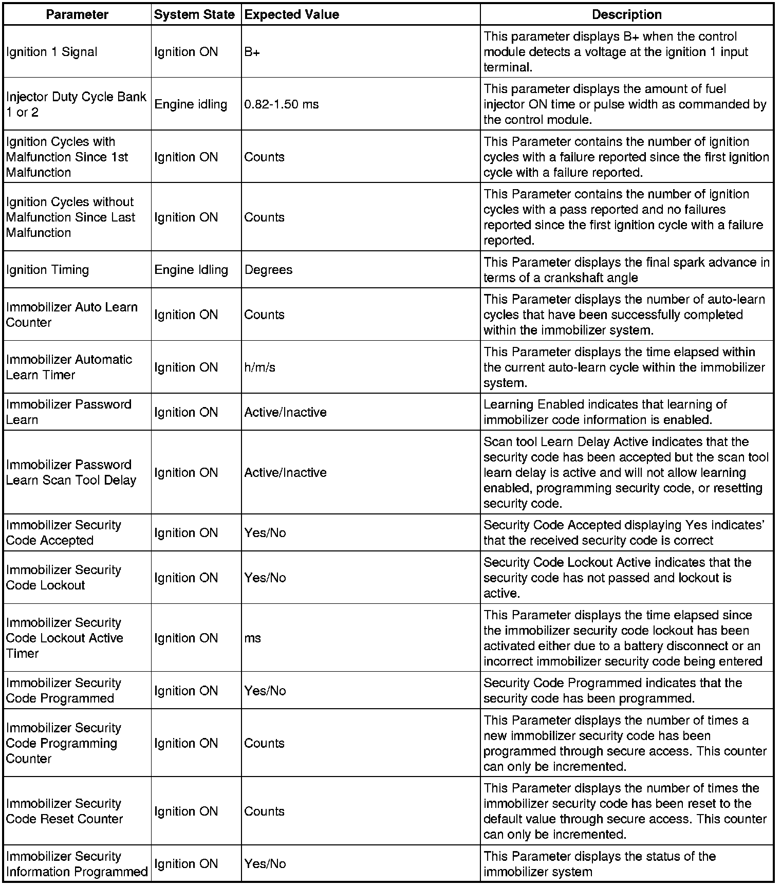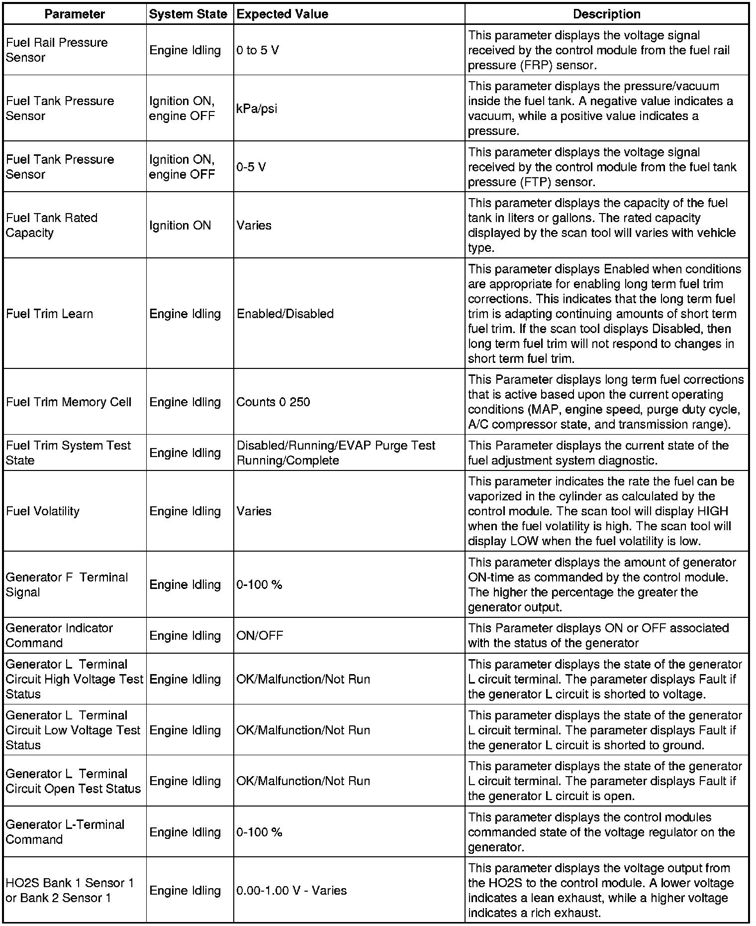 The Engine Control Module Scan Tool Data List contains all engine-related parameters that are available on the scan tool. The list is arranged in alphabetical order. A given parameter may appear in any one of the data lists, and in some cases may appear more than once, or in more than one data list in order to group certain related parameters together.