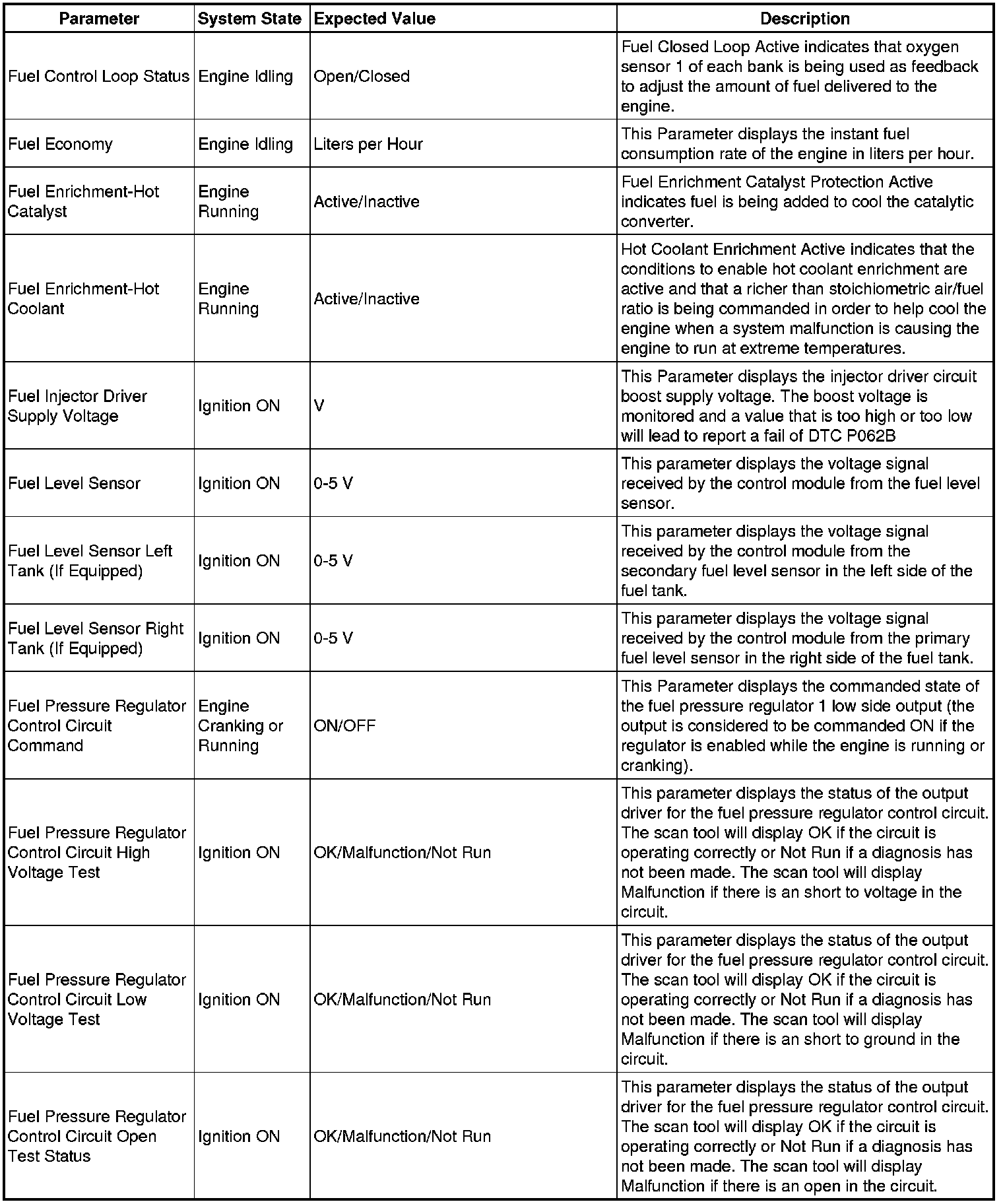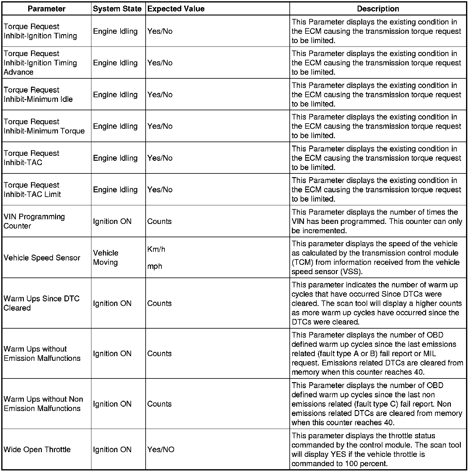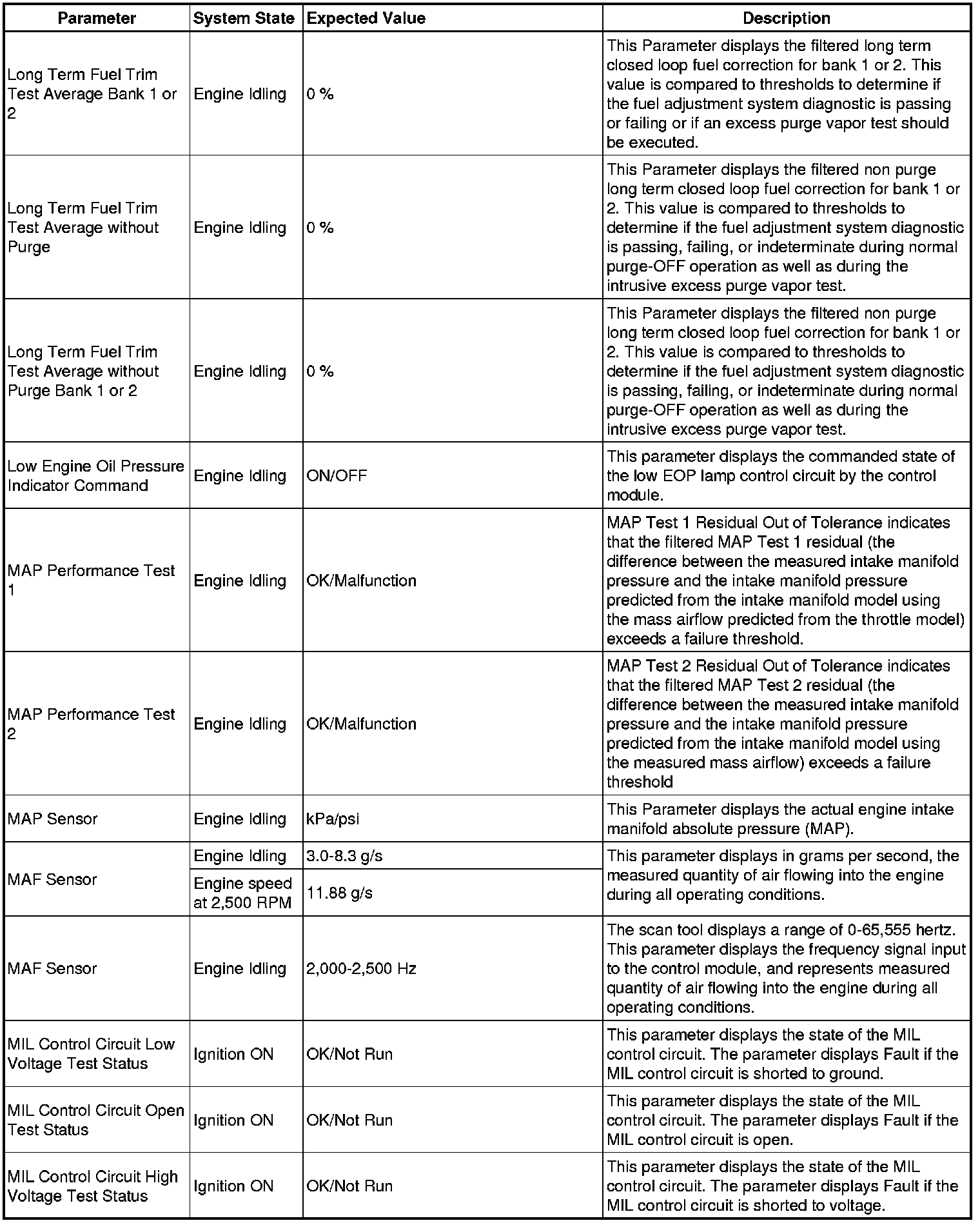 The Engine Control Module Scan Tool Data List contains all engine-related parameters that are available on the scan tool. The list is arranged in alphabetical order. A given parameter may appear in any one of the data lists, and in some cases may appear more than once, or in more than one data list in order to group certain related parameters together.