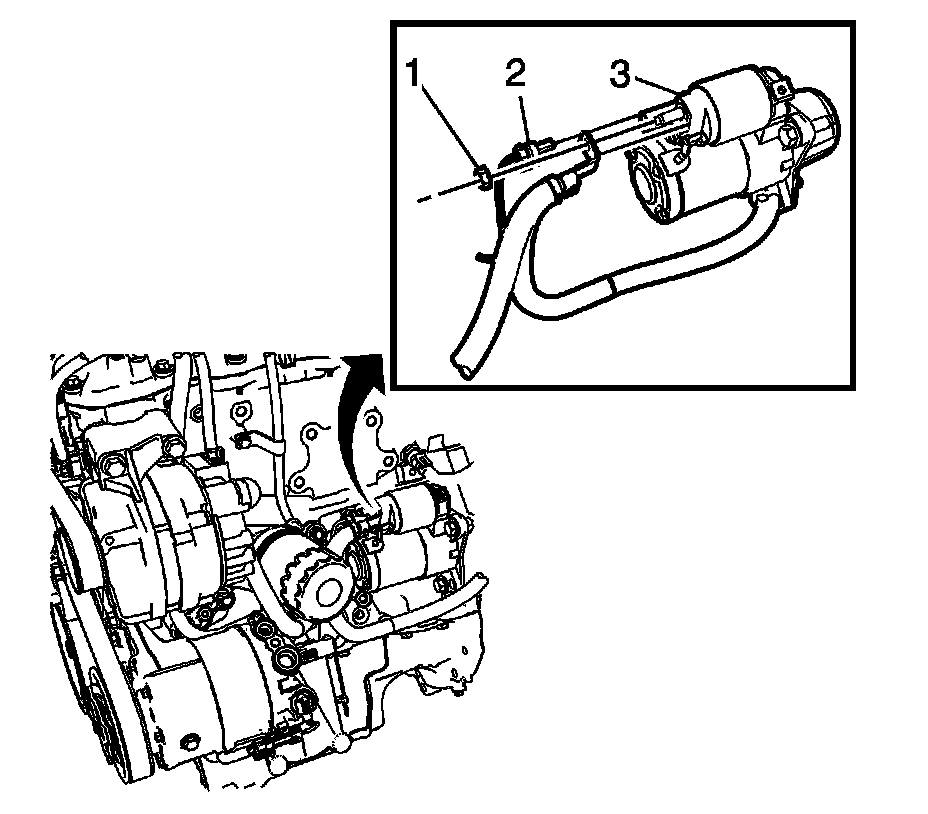 3. Remove the heat shield (2) from the starter.