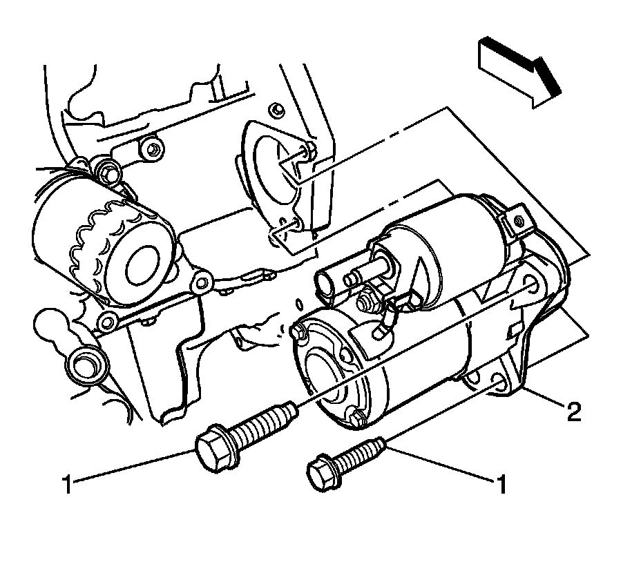 1. Install the starter motor (2).